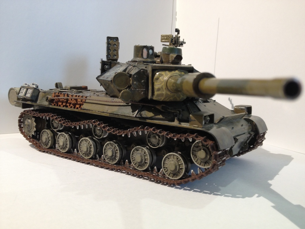 В следующий раз целью еще более модернизированных ИСов была выбрана Ангола. Рассматривался вариант отправки танков в Афганистан, но справедливо посчитали, что у моджахедов нет бронетанковой техники и смысла отправлять нет. Другое дело ворруженные силы ЮАР, тем более что дела в Луанде шли совсем не хорошо и новоиспеченная республика вопила о помощи. В этот раз решили направить сразу 6 машин, основательно их переделав. Кроме установки комплекса, получившего новую элементарную базу и лазерный дальномер, ИСам заменили двигатель на двигатель от Т-72, полностью переработали кормовую часть башни. Так как обьем оборудования сильно увеличился, решено было отказаться по примеру новейших танков от заряжающего и в переработанной увеличенной кормовой нише башни установили механизм заряжания револьверно-обойменного типа собственной разработки. На лоб и борта корпуса и башни навесили противокумулятивные экраны дифференцированной толщины из многослойной преграды. В качестве вспомогательного вооружения в навесном контейнере на правом брту башни установили ДШК, отказавшись от спаренного пулемета, тем самым еще выиграли немного места в башне, а так же блок НУРС с боекомплектом из осколочных и помеховых ракет. Вторую партию из 6 машин переработали еще основательнее - танки получили ЗПУ с дистанционным управлением, вместо блока НУРС - АГС-17 и дымовые гранатометы Туча. Отдельная рота имела несколько стычек с войсками ЮАР, в основном ведя огонь с большой дистанции и уходя от ответного удара. В 1988 году рота учавствовала в битве при Куито-Куанавале и добилась поражения 3 танков Ольфант и 9 бронеавтомобилей, потеряв одну машину. После освобождения Намибии рота учавствовала в боях против УНИТА, где комплекс "Корунд" оказался очень эффективным для обнаружения засад вне дальности эффективного огня ручных противотанковых средств. После развала СССР танки решено было не передавать правительству душ Сантуша, во избежании захвата агентами иностранных спецслужб, а демонтировав комплексы танки уничтожить.