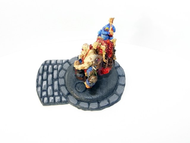 Думаю кишки и кровь попробуй в следующий раз маслом расписать, ну что бы блеск был и насыщенность цвета. А так здоровяк впечатляет с его бородавками )))) илии что это...Короче поздравляю с прибавлением готовой фигурки в галерее!!!