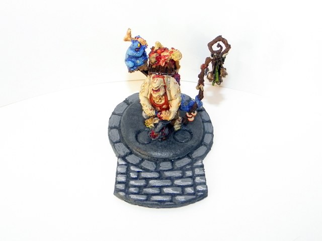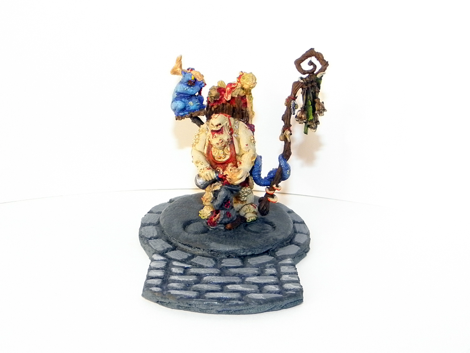 Очень клёво.Для начала мебель.Только к двум вещям придерусь, первое: кожа здоровая немного, на мой взгляд зелёности не хватает, как у всей нурглятины, на мой взгляд, кому как.Второе:один маханький косячок, мещочки с боку цвета кожи (хотя может так и задуманно) вот и вся мебель от меня.Ну а что мне особенно понравилось так ето первое:МЯСА!!!МЯСААА!!!Румянное, красивое, МЯСА!!!Второе:посох, очень даже красивый, особенно хочу отметить хороший окрас древа и лохмотьев.Третье: подставочка неплоха, но как то находится в тени красоты миниатюры. Четвёртое:маленькое чудо, сидящее на плече и беднягу которому вещества в рот заливают, ну классно покрашено и усё.