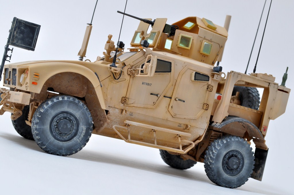 Роман, колеса красил несколькими цветами. Диск обычный черный. Само колесо это тамия XF85, боковина до протектора это светлый серый, почти полупрозрачным слоем, так что бы границы перехода к XF85 были мягкими. Пыль это в основном АК074, очень хороший цвет. Почти точечно возле все линий протектора наносил, потом уайтом растушевывал что бы не было резких областей. Иногда добавлял пигмента МИГ Beach Sand.