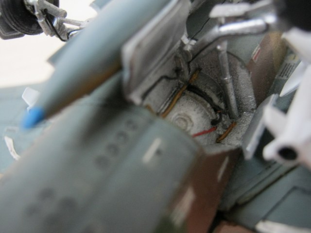 Ну, естественно совершив такие подвиги, идем дальше. И вот она первая робкая попытка сделать имитацию гидравлики и прочих трубопроводов в нишах и на стойках шасси. В принципе для первого раза я думаю не плохо.