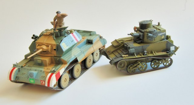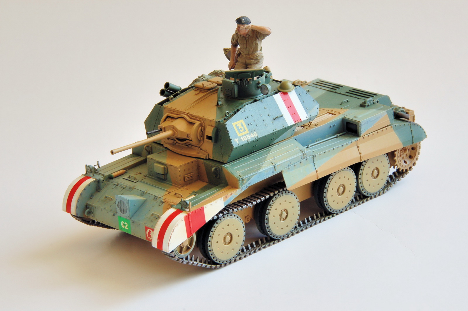 моя схема окраски сделана по мотивам той, что дает Бронко в разукрашке. дабы не привязываться к боксарту изменил и подразделение, в котором проходил службу экипаж танка. модель представляет 3-й взвод, 2 эскадрона (Scuadron "B"),2 -го королеского танкового полка (2RTR),7-й танковой бригады ( 7th Armoured Brigade), 7 танковой дивизии (7th Armoured Division) "Крысы пустыни"