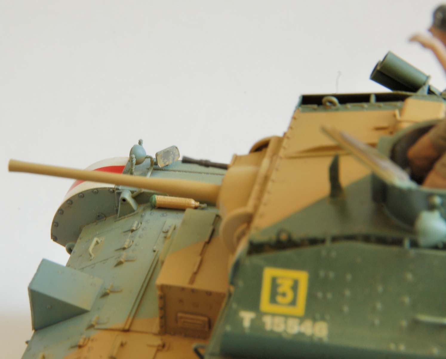 модель была собрана и загрунтована тамиевской грунтовкой. вариант для окраски конечно же был выбран, как на боксарте. такого расписного танка еще поискать надо ))) Это стандартная Caunter схема. В качестве основного цвета на этом прототипе используется Portland Stone, в качестве ломанных линий использовались Silver Grey и Slate. Для Portland Stone мешал из тамийских акриловых красок XF2 + XF3 + XF57. Silver Grey взял эмаль МоделМастерс 2033 Blue FS35414 (Flat) , Slate взял эмаль Тамия XF-58 Olive Green. смывка маслом на уайт-спирите.