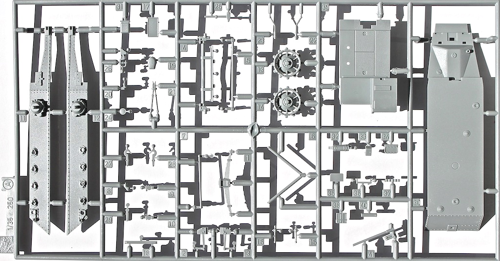 Еще один 250-й. На мой взгляд, прекрасный набор. Отличная детализация, замечательный интерьер (что, в прочем, обычное дело). Большое количество фототравления. Наборные колеса. Траки Magik Track. Металлические усы на крылья. Даже два вида пулеметов, старый и новый. Новинка-глянцевая инструкция! Как обычно, большой литник с атрибутикой пехотинцев. Пять вариантов камуфляжа. Вообщем, все что надо есть.