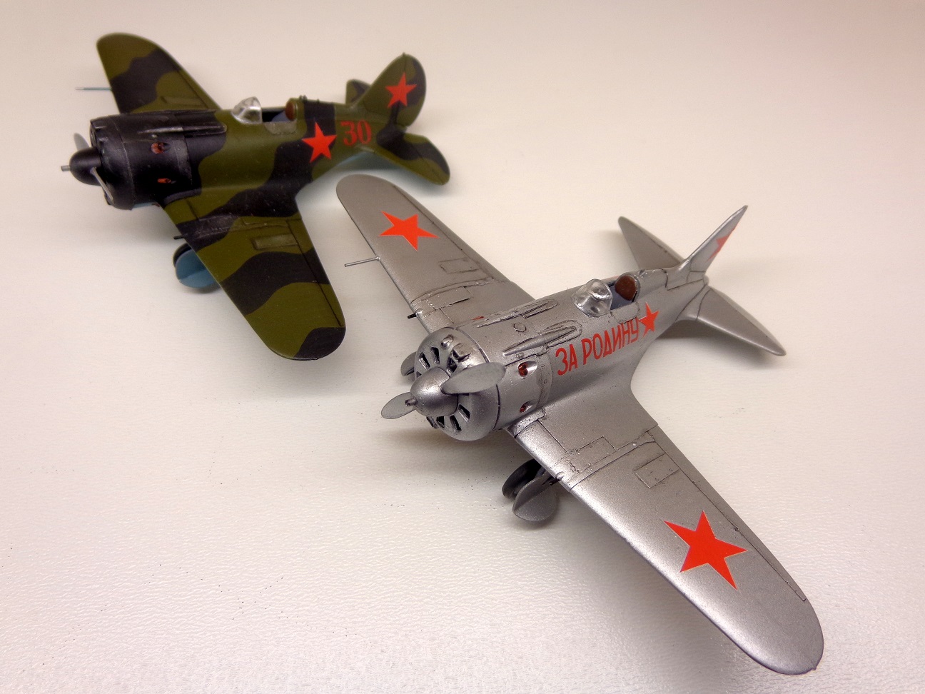 В последнее время многие выставляют на просмотр модели этого самолета. Я тоже присоединюсь и продемонстрирую свое творение. Модель от ICM собирается легко. Я же одновременно собирал сразу две. Вообще когда смотришь на декаль от "Бегемота" к И-16, интерес вызывают многие варианты и остановиться на одном каком-то очень затруднительно. Модели были сделаны полтора года назад, что называется из "каропки". Заменил только колеса на резиновые, хотя и родные хороши, просто эти резиновые пролежали уже двадцать лет, надо же использовать когда-нибудь. Окрашено "Аканом". Глядя сегодня на эти модели захотелось кое-что поправить, изменить. Но наверно я воплощу это уже на других, новых "ишачках".