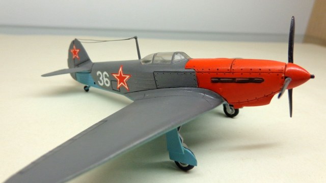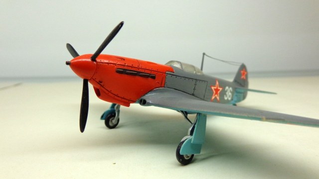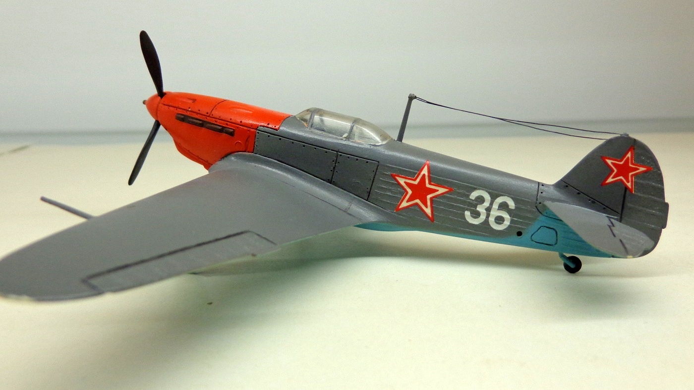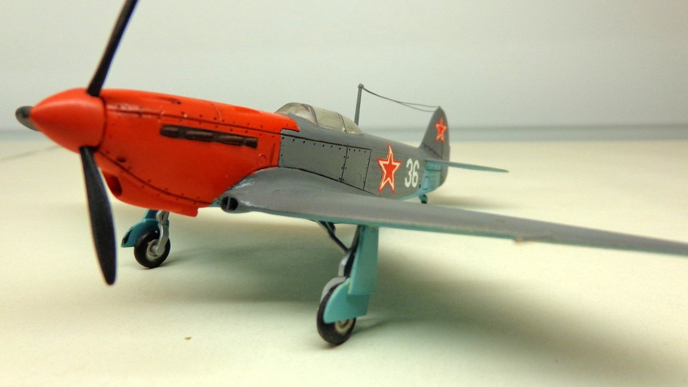 Эта моделька сделана мной, кажется, в 1990 или 91 году. Сегодня трудно представить, но тогда не было интернета, модельных магазинов, НИЧЕГО НЕ БЫЛО. Но была эта непонятная страсть, и я шел на городской главпочтамт и отправлял посылки в ПНР, ЧССР и ГДР(были тогда такие страны), чтобы в обмен получить оттуда модели. Не было и информации (кроме наших "Крылышек" и чешских "L+K"). Схема окраски этого Яка взята из самиздатовской брошюрки "Стенд" присылаемой из Баку. Это даже была и не схема окраски, а словесное описание. По модели: добавлен воздухозаборник слева на стыке крыла и фюзеляжа, сделан внутренний раскрой, антенна - из медной проволоки. От времени кое-где краска слетела. Думал: может перекрасить, но оставил как есть.
