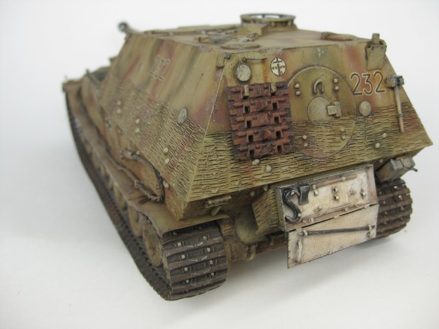 На очень крупных планах кормы видно, что паяльный циммерит выглядит, скажем так, не стопроцентно достоверно. Но стоит немного отдалиться, как все становится ОК. Сам же самоход очень понравился - сборка, окраска, тонировка - только самые положительные впечатления.