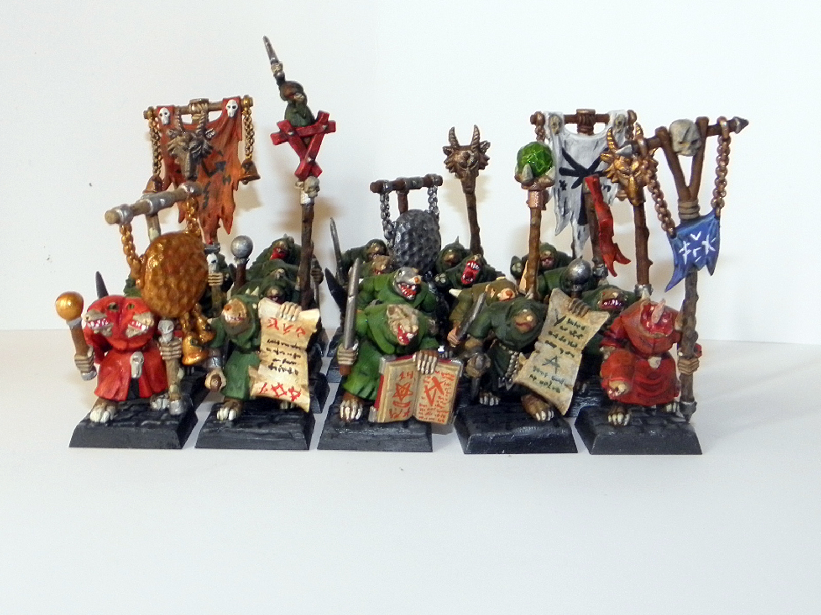 Монахи клана Чумы – это фанатики, посвятившие себя делу распространения заразы и разложения во имя Великого Рогатого божества. Эти ярые приверженцы распада по своему уникальны в обществе скавенов, ибо они фанатично преданы своему клану и его главной цели – породить универсальную болезнь. Они верят, что как только этот смертельный мор истребит всех жителей поверхности, скавены поднимутся наверх и среди руин присвоят принадлежащее им по праву – весь мир от края до края. И тогда Великая Рогатая Крыса узнает, кто именно привёл её отпрысков к законному и предначертанному им господству, и клан Чумы возвысится, и будет править над всеми иными.