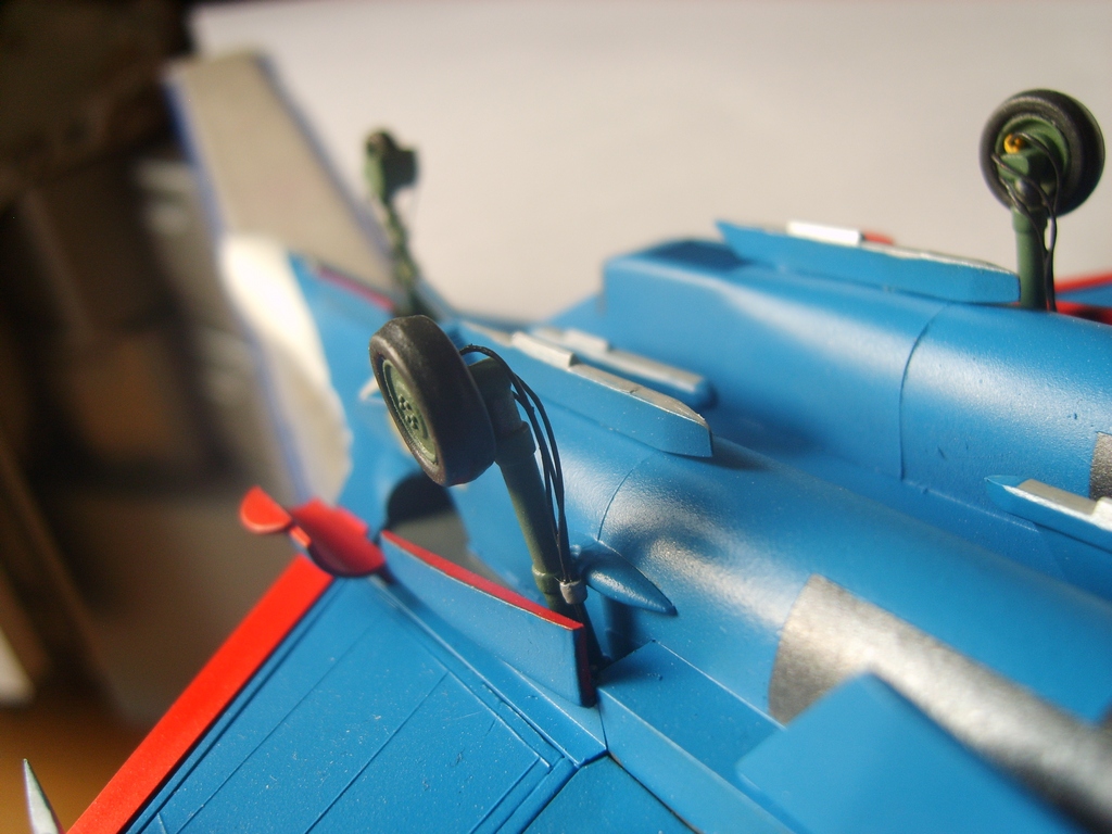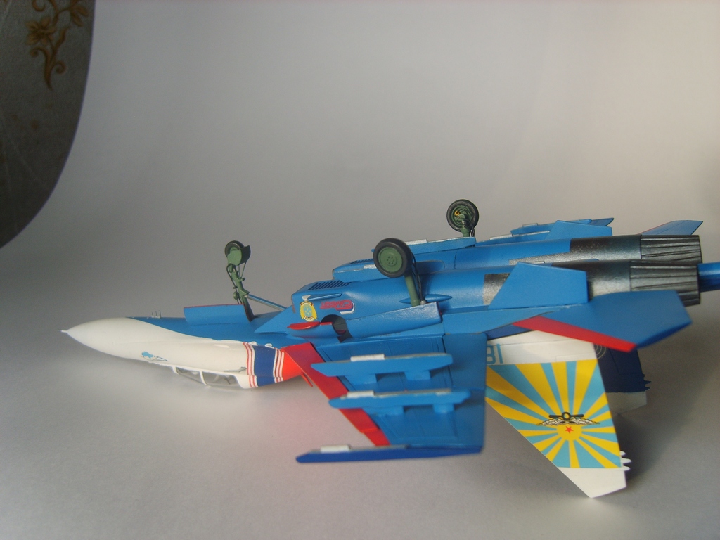 Придраться есть к чему. И шагрень при покраске . И незашпатлёваные швы на стыке воздухозаборников и двигателей и необработанные передние кромки воздухозаборников. Также ничего не сделано с ластом и соплами ( а ведь это не так уж сложно - укоротить сопла и, заделав траншеи - нарезать новые. Совершенно неверны цвета стоек шасси... И это- самые крупные из недостатков.