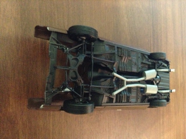 Выставляю на суд свою первую модель (авто). Заказал на ebay. Собирал примерно пару недель. Закосячил растворителем стоковский движок, пришлось ставить со спортивной версии (благо в ките было два варианта сборки). Красил баллонами (грунтовка, краска и лак). Грунтовка с баллона достаточно зернистая, приходилось шкурить. Качество кита приемлемое, за исключением мелких дефектов. Не сходилась рама с кузовом в районе капота и накладка под передним бампером. Позже выложу более удачные фото.