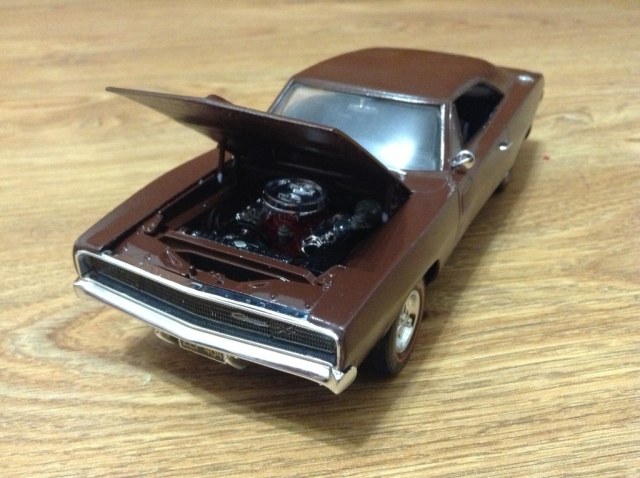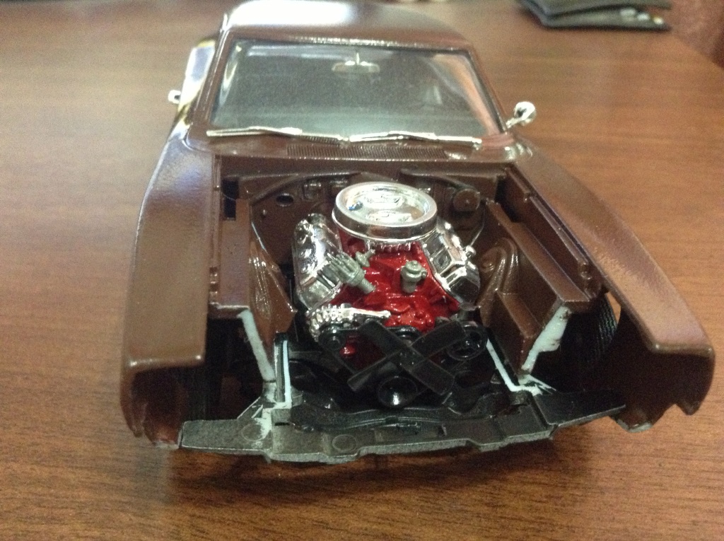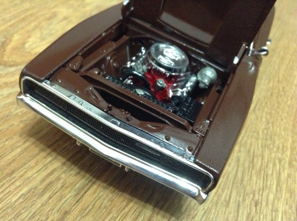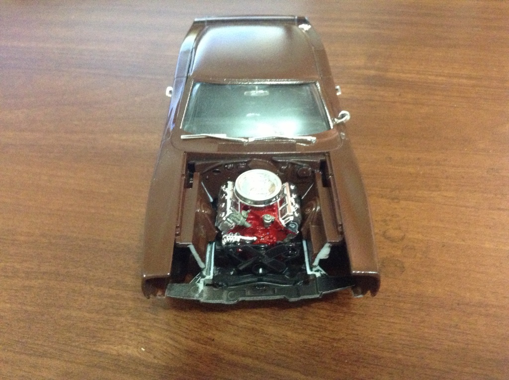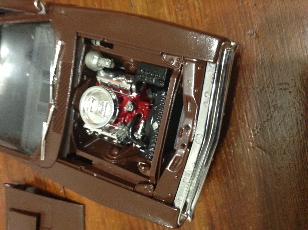 Капот слишком плотно закрывался, сейчас подпилил, перекрашиваю. Осталось еще пару хромированных значков приклеить. Сижу жду еще 3 кита которые заказал- Revell 1/25 '68 Pontiac Firebird 2 'n 1, Revell 1/25 Dodge Challenger 2 'n 1 и Revell 1/25 '68 FORD MUSTANG GT 2 IN 1.