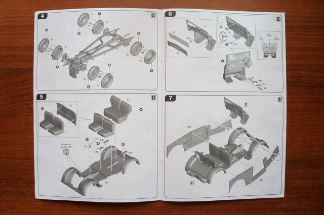 В комплекте всего два литника, декали, пластик для стекол, инструкция и спам на цветном листке. Инструкция теперь состоит из рендеров 3D модели. Четыре варианта окраски. «Стекла» нужно вырезать из прилагаемого тонкого пластика.