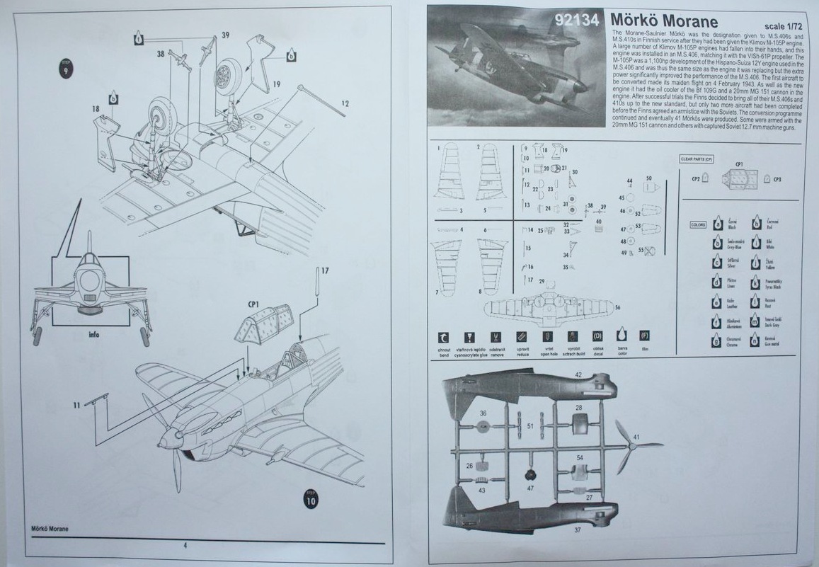 Обзор моделей MS406 и MS410 от RS Models я давл ранее. В существующий набор добалена рамка с новым фюзеляжем, патрубками, винтом и радиатором. В-общем, с теми деталями, которые изменились из-за установки М-105.
