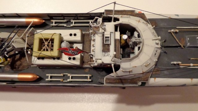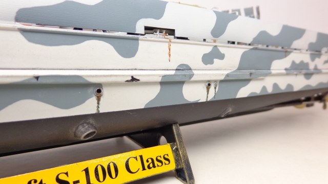 Присоединяюсь к замечаниям Игоря Ушакова и Сергея Петленко о ржавчине слишком не естественно она выглядит, вот ржавчина на салазках для глубинных бомб смотрится не плохо а в остальных местах выглядит не очень убедительно и к месту.