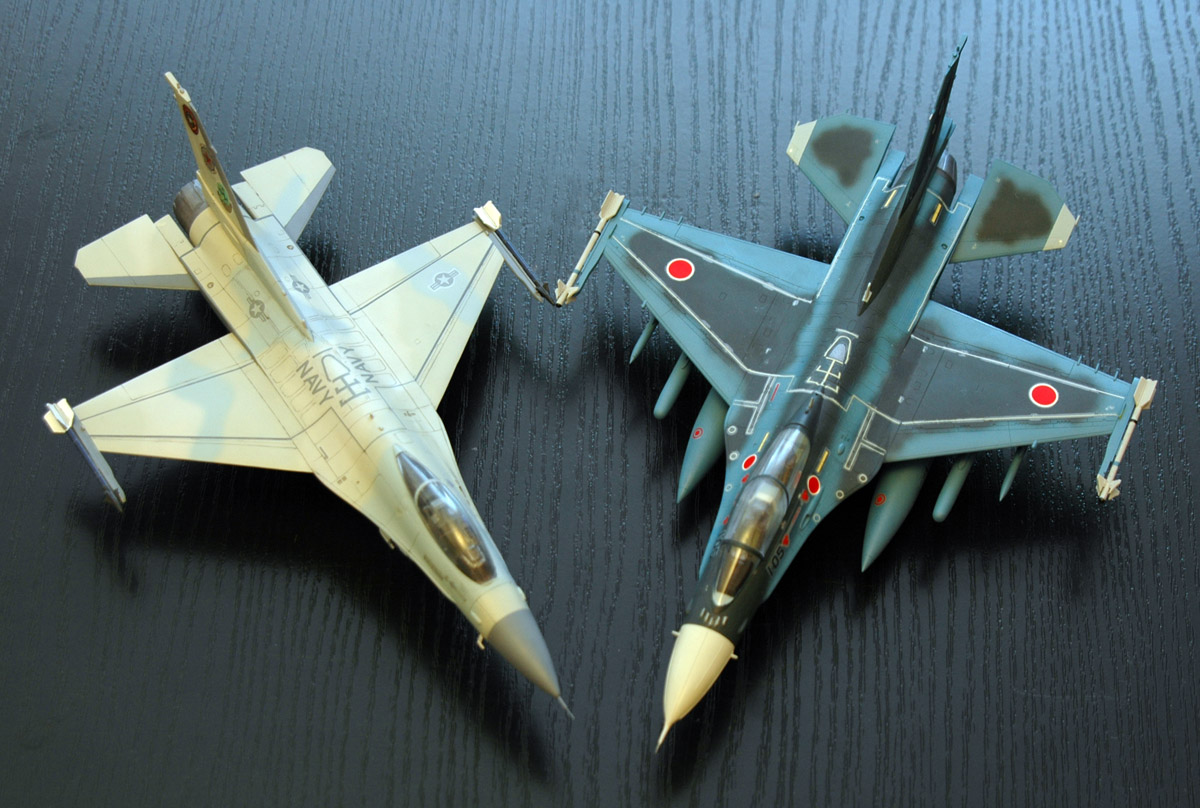 Для сравнения, добавил сравнительную схему F-2 и F-16, а так же пару сравнительных снимков моделей.