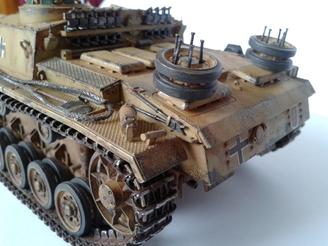 работа интересная! но я не заметил проводки к гранатомётам и фаре.... о сетках вам уже сказали, конвойный фонарь но окрашен ....да и фотографии слишком тёмные