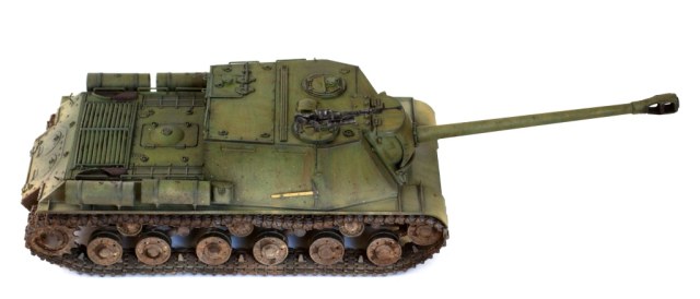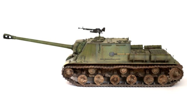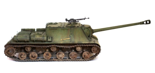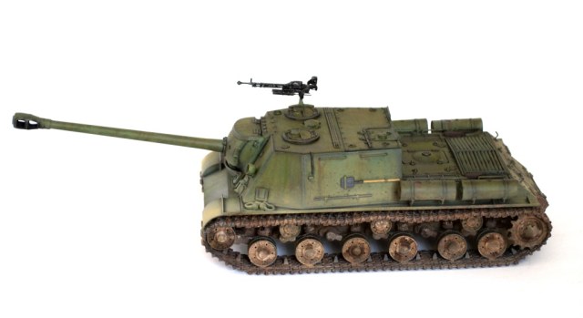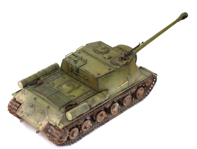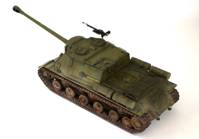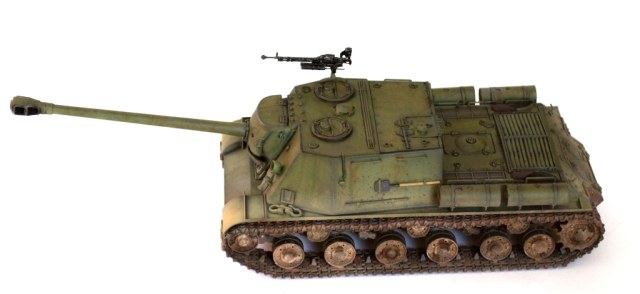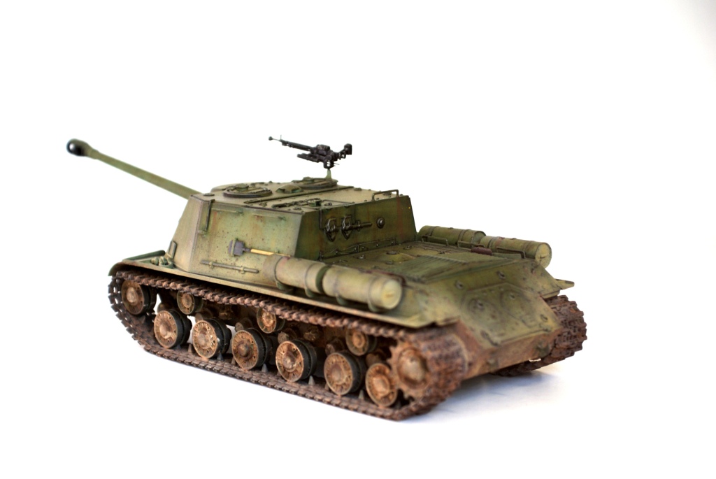 Данной моделью я продолжаю серию строек тяжелых САУ советской армии, следующая ИСУ-152 завершающая (СУ-152 и ИСУ-122 уже есть). Никакой привязки к прототипу не предполагалось, так что декалей нет.
