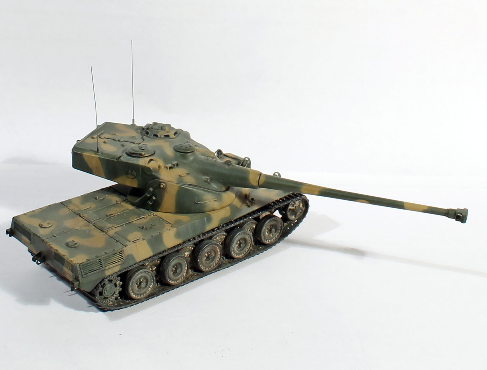Камрад, ну откуда потертости и сколы на никогда не воевавшей машине? Даже на АМХ-13, машине серийной и воевавшей, сколы и потертости - большая редкость. Там даже запасные траки и каток как закрашивали в базу на новой, так они и на слом бывало уходили с точно такими же траками и катком, покрашенным в базу. Иными словами, ими ни разу не воспользовались за всю многолетнюю эксплуатацию. Не понадобилось. А вы про сколы...