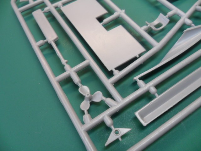 Рули, крепления торпед, рубка, гребной винт, и прочие детали плотно поместились на двух рамках. Детали содержат немного облоя.