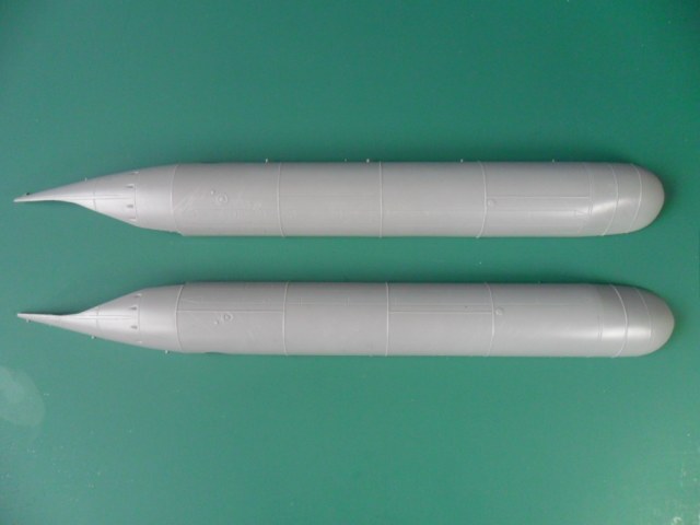 И так, сам корпус из-за технологии ЛНД слегка замылен, но для этого масштаба не критично, гораздо хуже для копийности наружная расшивка корпуса. Сборка половинок корпуса тоже будет испытанием, т.к. никаких элементов облегчающих сопряжение нет и в помине. Тоже самое и на торпедах G7E., но в отличие от корпуса они еще отдельно от боевых частей.