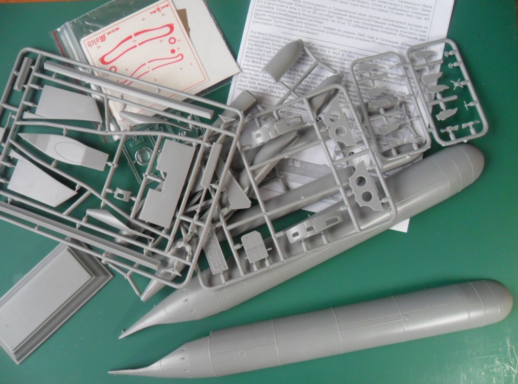 Декали изображают два варианта пастей с зубами и цифры S-16 и S17. А вообще, инструкция, довольно подробная, дает 5 вариантов оформления минисубмарины.