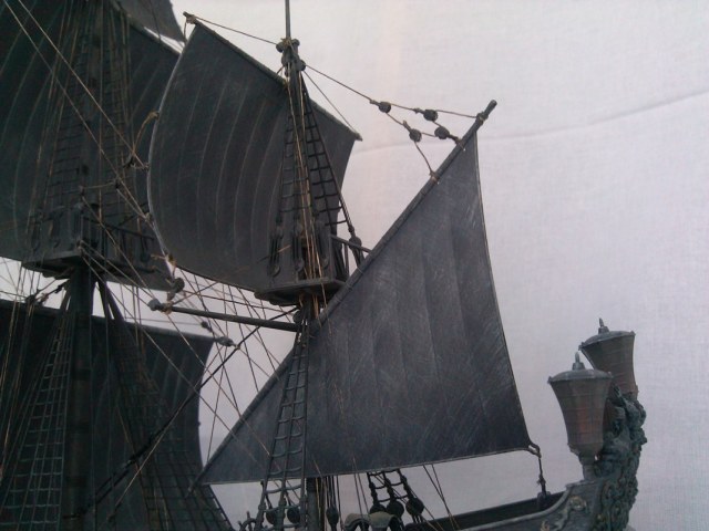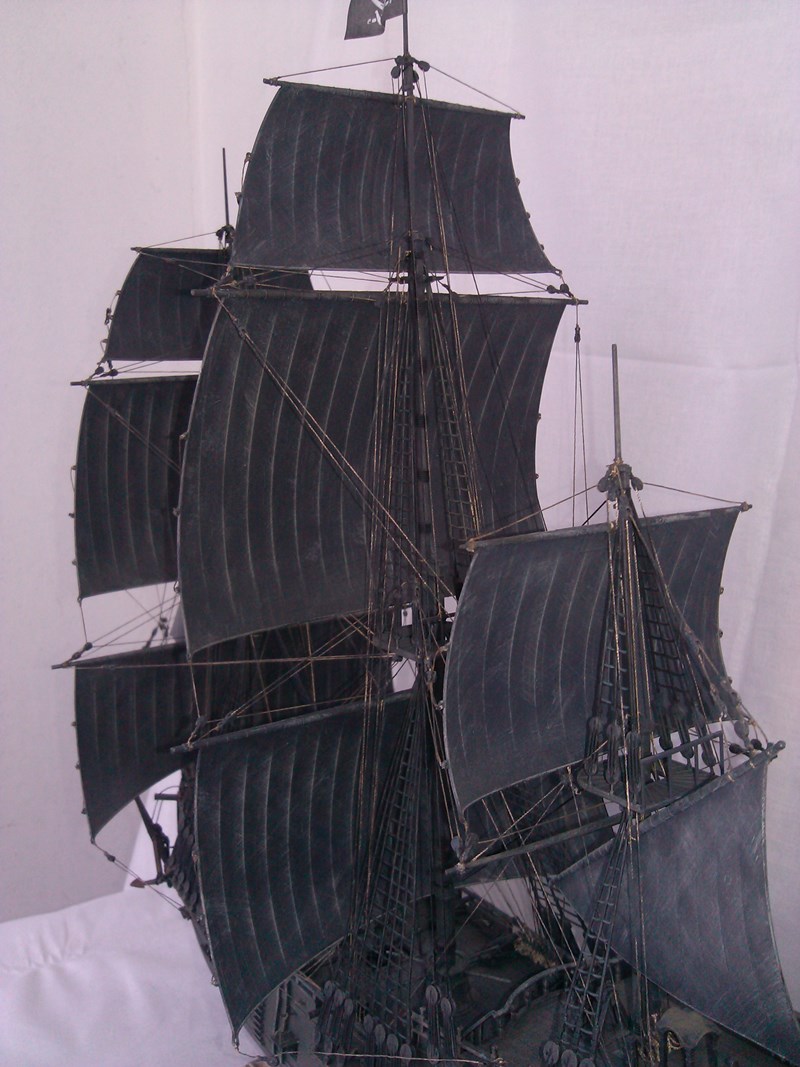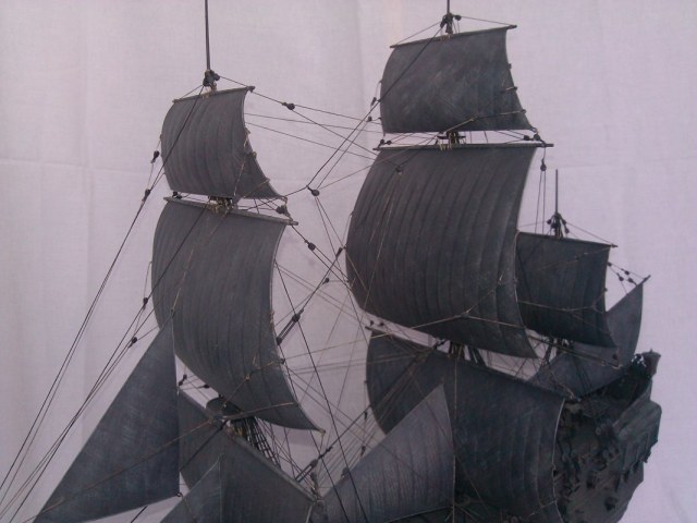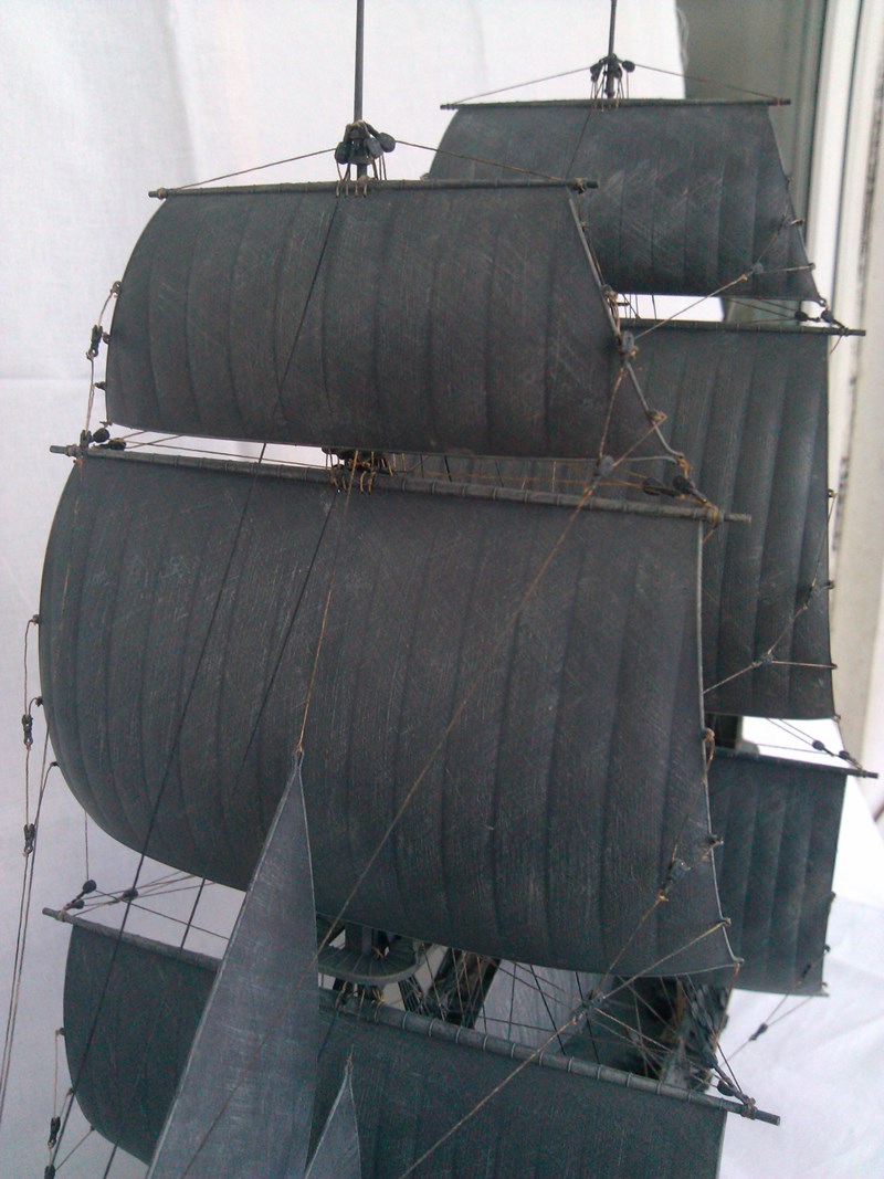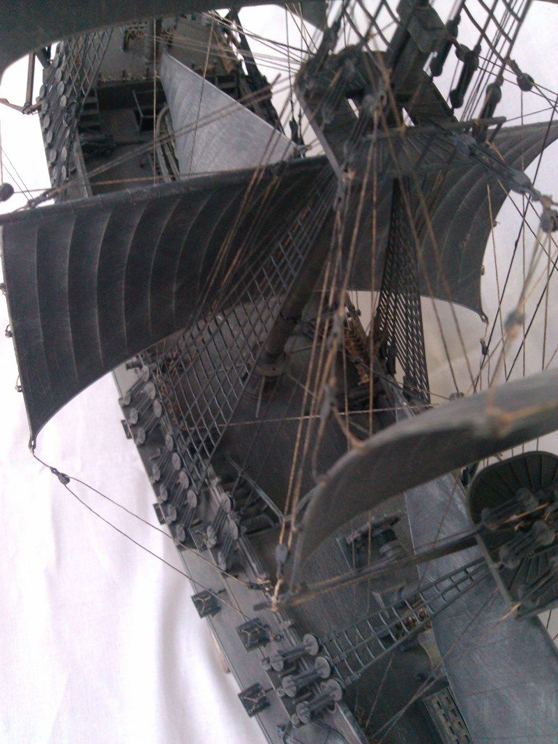 Из того что увидел,всё понравилось.Окрашен и тонирован с довольно таки редкой аккуратностью.Верёвки органично вписываются ровно как и паруса с корпусом.7-ое фото вообще на кадр из фильма похоже.Для оживления модели нехватает разве что немного ненавязчивых потёков со шпигатов и от проёмов орудийных портов.Я б есчё немного оттонировал бы юферсы,совсем чуть чуть.В общем,для изкоробки очень здорово.Про паруса хочеться сказать(вот вам и вакушки...)чем плохи?Возможно стоило попробовать симитировать подобную как на парусах текстуру и на пластиковых вантах?