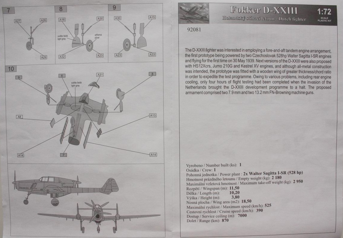 В 2011 году чехи выпустили модель интересного самолёта - Fokker D-XXIII (индекс набора 92053, обзор его уже проскакивал на Каропке делал его Олег Вехов).