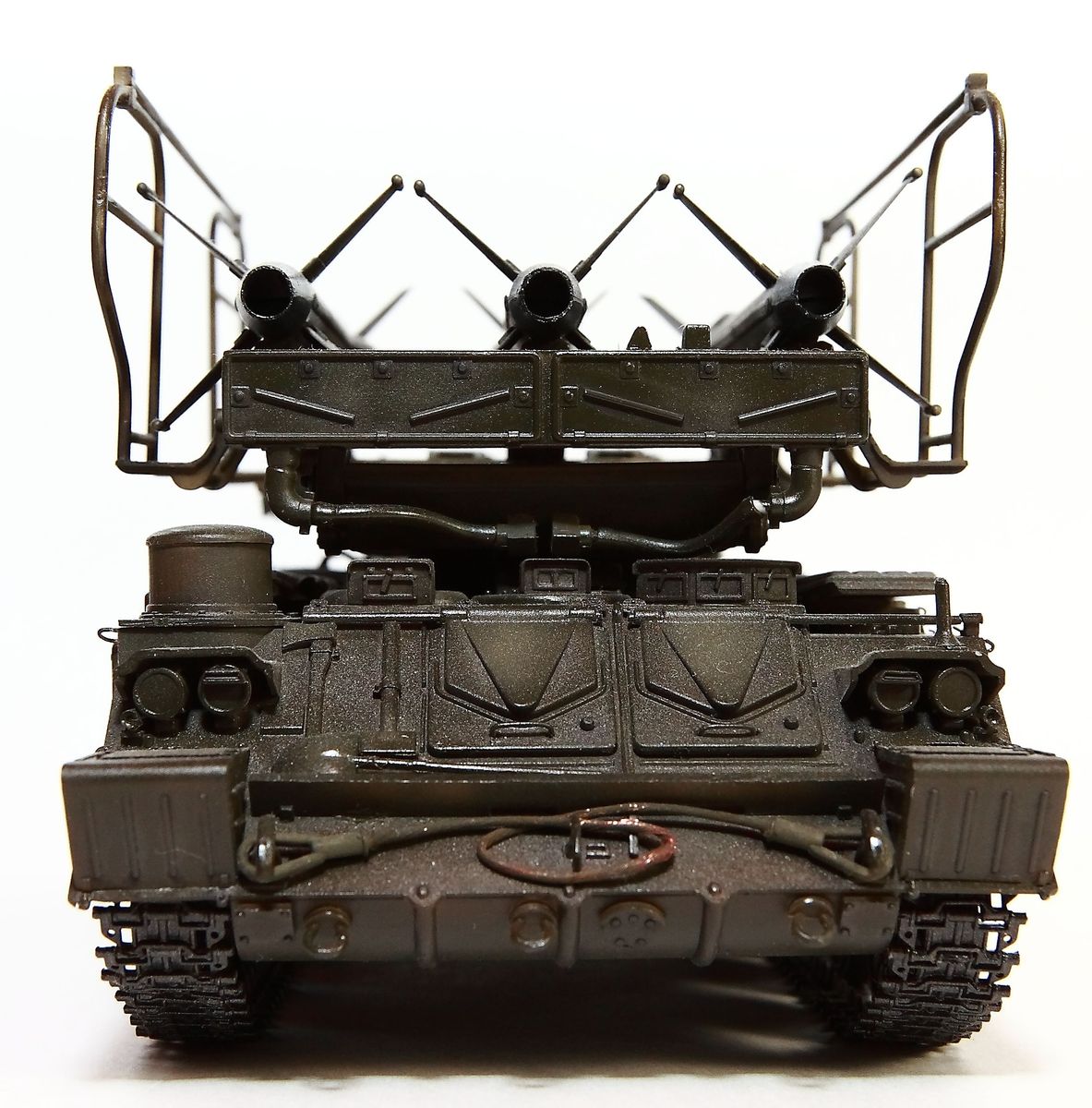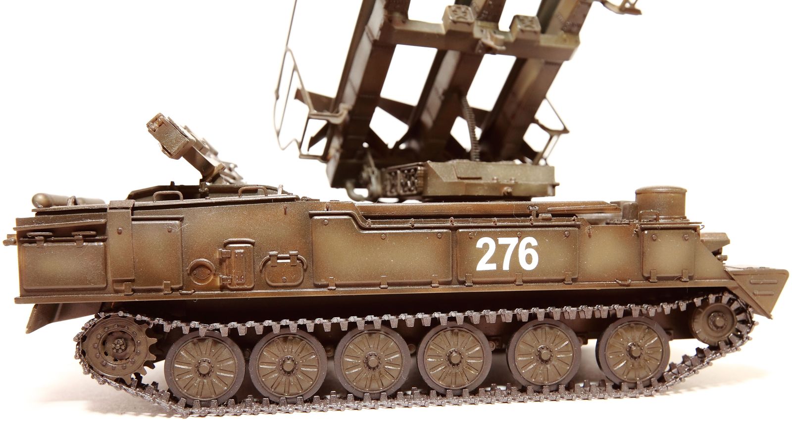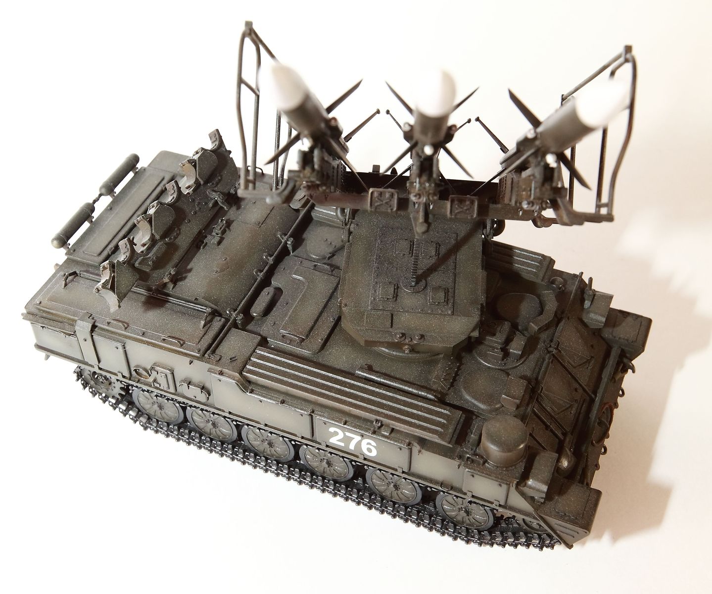 Одна из первых моделей которой я остался доволен сам. Собиралась без перепила ванночки , не смотря на небольшую разницу по центрам катков. Из доработок стоит только упомянуть крючки по бортам остальное попытка дополнить отсутствующий набор трубача.