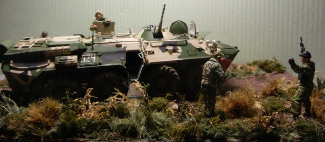 По задумке изначально я хотел изобразить "полевой выход" ,не хотел я отображать боевые действия,поэтому и КПВТ по птичкам, от беды по дальше и экипаж не на местах так как "ребятки" решили сделать остановку и немного "пройтись пешком" в округе, а в случае спокойной обстановки сделать небольшой привал,так как это их будующий первый привал ,техника и форма пока чистые!!)