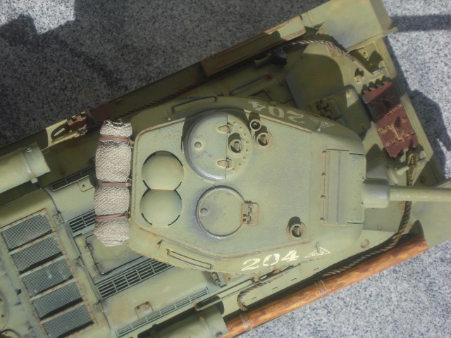 Потертости на люках ,башне и копусе сделал с учетом как и где наступает на броню экипаж посмотрев предварительно фильм "Четыре танкиста и собака".