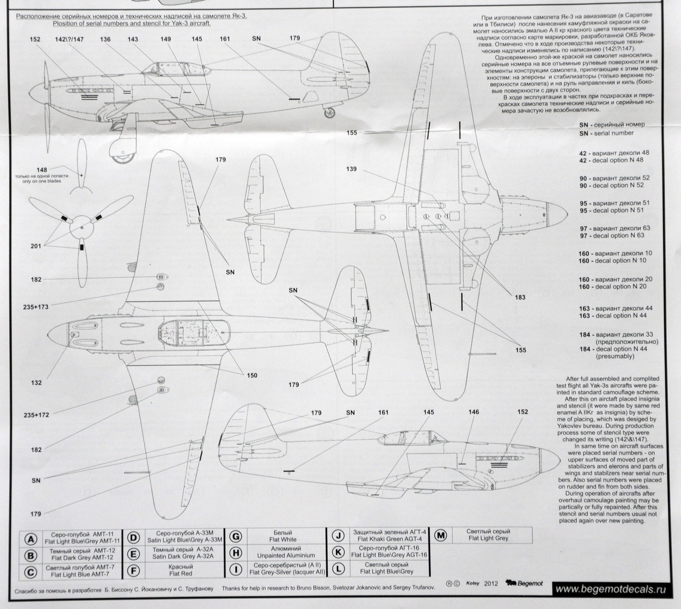 Деколь ЯК-3 (масштаб 1/48) Begemot