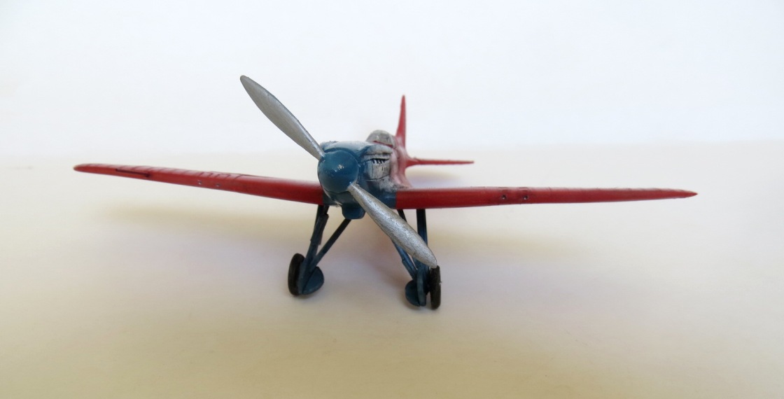 По модели : явно неправильно собрано шасси - самолёт очень сильно задран. Неравномерно покрашены лопасти винта. Да и родной фонарь явно требует замены на самоделку - видно толщину "бронестекла"...