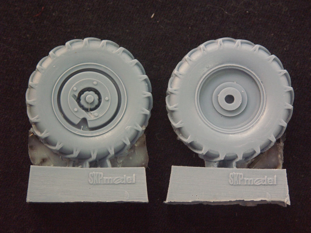 Колеса: круглые, отлиты без смещений, на передних очень хитрый питатель, не задевающий протектор. На задних колесах протектор в некоторых местах с пузырьками, но его будет не трудно удалить из за размеров детали.