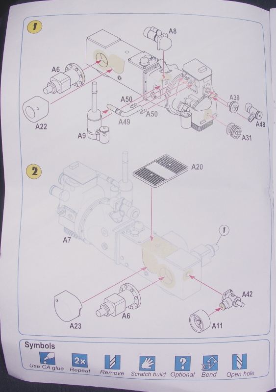 Мелочевка. Классно выглядит руль в оплетке…правда пока не понял как его нужно будет удалять от питателя) В основном детали даны травлением, что на мой взгляд пошло модели на пользу. В наборе 2 вида сидений: с нормальной спинкой, и классическое тракторное.