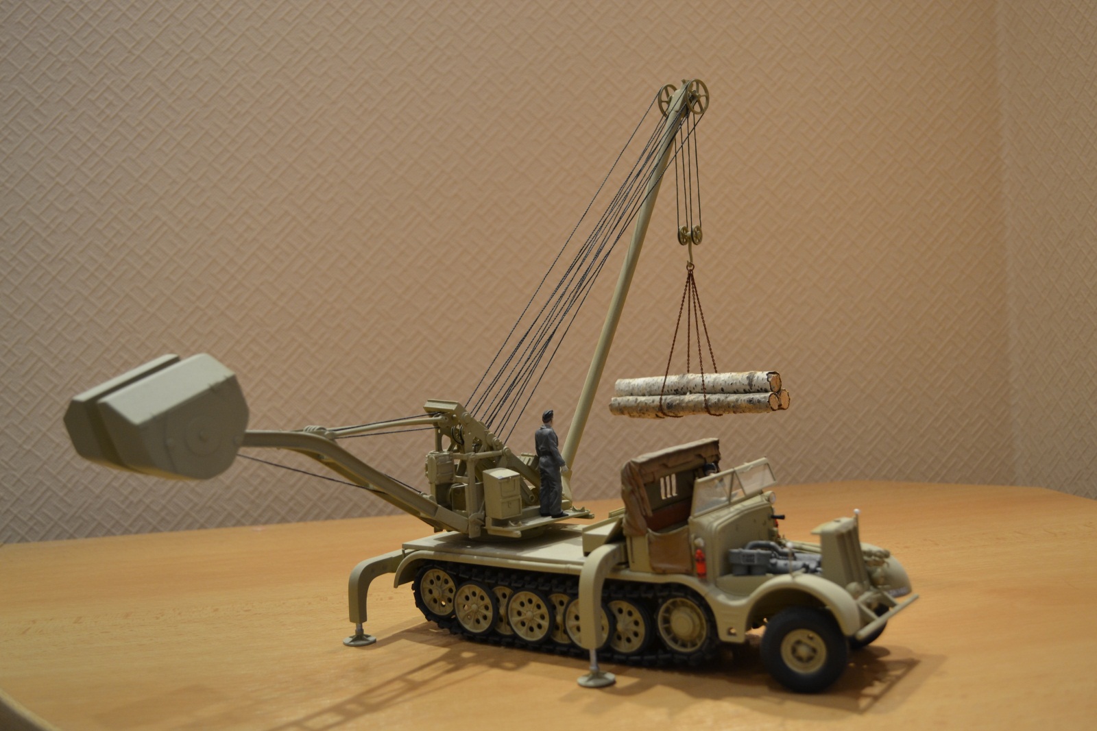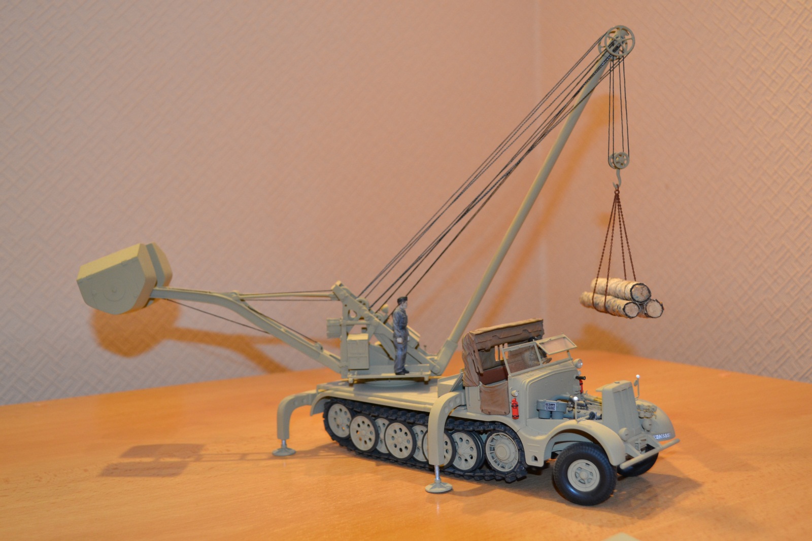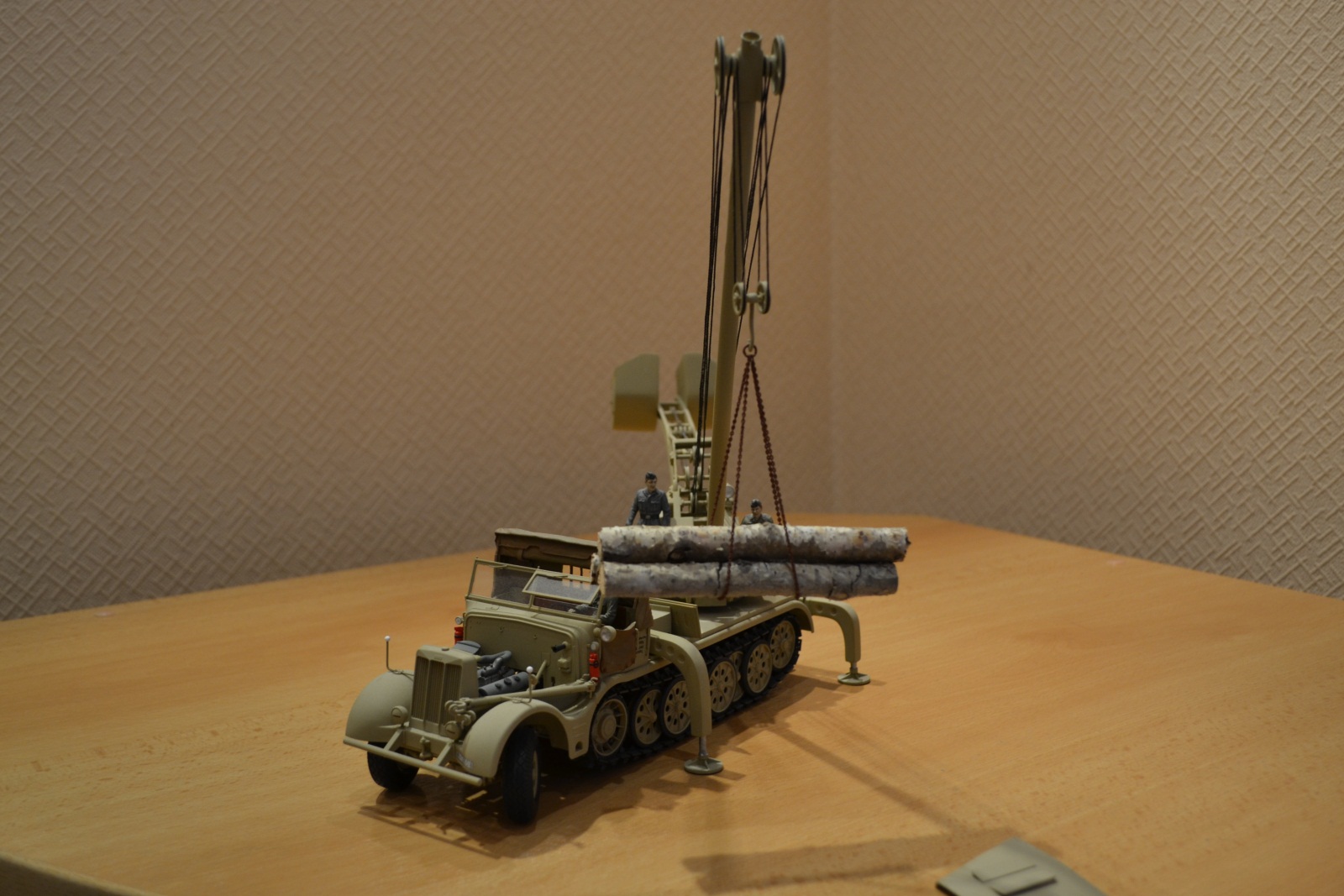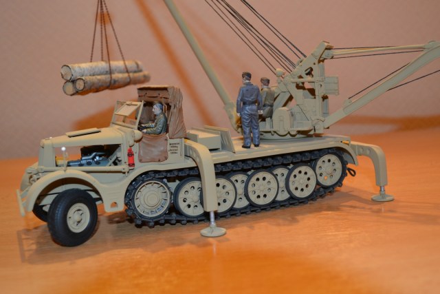 Хочу представить Вашему вниманию модель достаточно редкого крана фирмы Demag грузоподъемностью 10 тонн на базе 18 тонного полугусеничного тягача фирмы «Famo». Полное его название звучит: Sd.Kfz. 9/2 Drehkran(Hebekraft) 10taufFahrgestelldesSchwerenZugkraftwagen 18 t «Famo». Машина была выпущена очень небольшим тиражом в 1944 году и предназначалась, главным образом, для эвакуации с полос поврежденных самолетов, хотя, говорят, находила применение и при ремонте двигателей танков, демонтаже башен и трансмиссий. В настоящее время в пластике пока никем не выпускается.