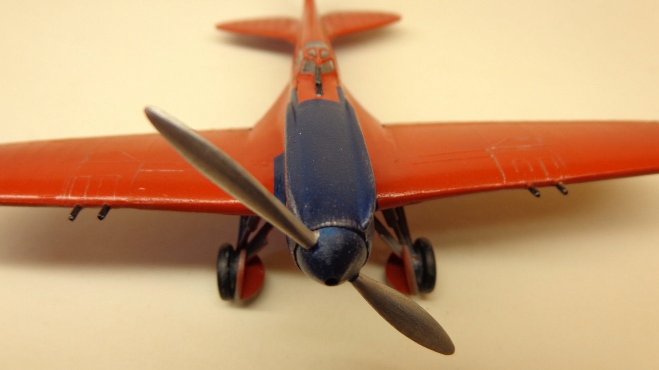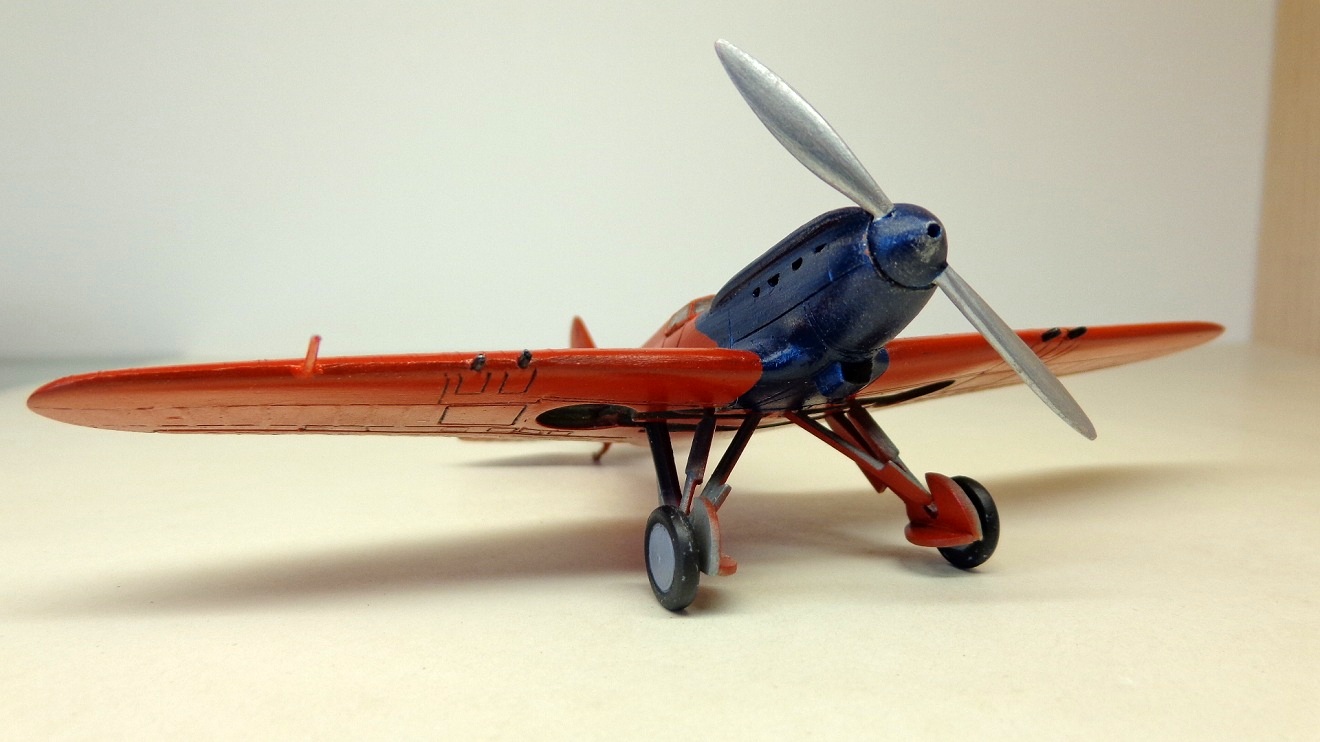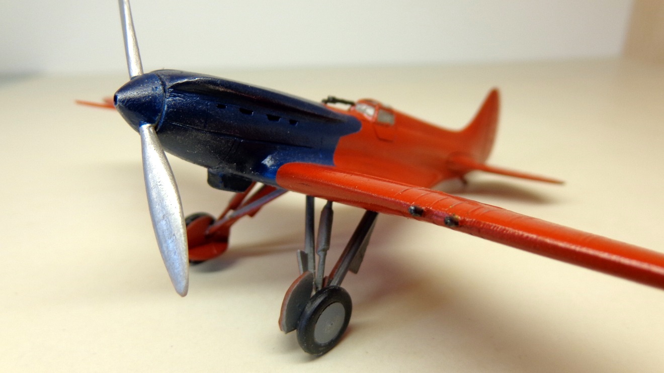 Летом 1974 года я, взяв с собой фотоаппарат под названием "ФЭД-3", отправился в городок Чкаловск. Было мне тогда четырнадцать лет и это было, кажется, первое самостоятельное "путешествие", от Горького до Чкаловска около 100 км. А цель моей экскурсии - музей В.П.Чкалова и конечно же самолеты, находящиеся там. Если о некоторых обитателях ангара(АНТ-25, И-16, МиГ-15 и У-2) я имел представление, то красный моноплан под названием ЦКБ-15 был для меня открытием. Еще тогда, я помню, сумел разглядеть, что ниши шасси зашиты металлом, а стойки закрыты обтекателями. Но подробности об этой машине я узнал значительно позже. Теперь про модель. Куплена давно, еще когда появилась. Тогда же и склеил. В общем ей лет десять или больше. Сборка, конечно на "троечку". Родные колесики выбросил, приклеил от И-16. Только что такая же моделька выставлялась, попробую и я.
