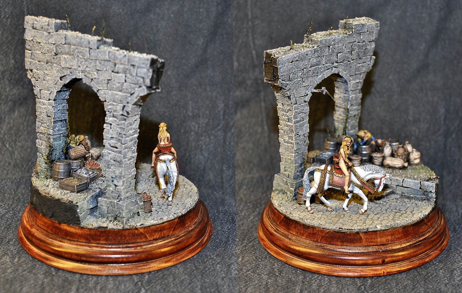 Теперь по самой работе. Использовались авторские миниатюры Александра Гусева, основание полностью самодельное, все каменные элементы созданы мной из пробкового дерева. Покрашено традиционно акрилом Citadel Color. Работа делалась для Дмитрия Гришина сайт http://narubezhakh.ru