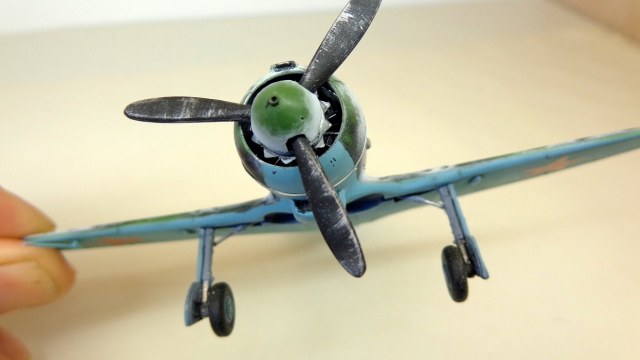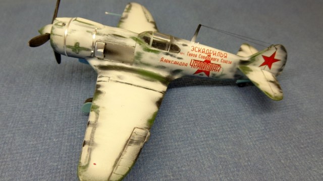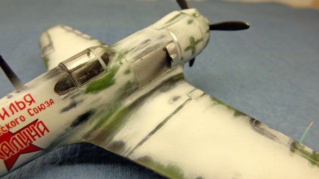 камо получился замечательно, по поводу следов эксплуотации то можно не стесняться из за низкого качества сборки двигателей у Ла5 были постоянные потери масла, соответственно оно было на фюзеляже. К стати ешё один способ нанесения такого камо (если акрил закончится)наносится масляная краска и после частичного высыхания так же стирается на нужных участках скипидаром.