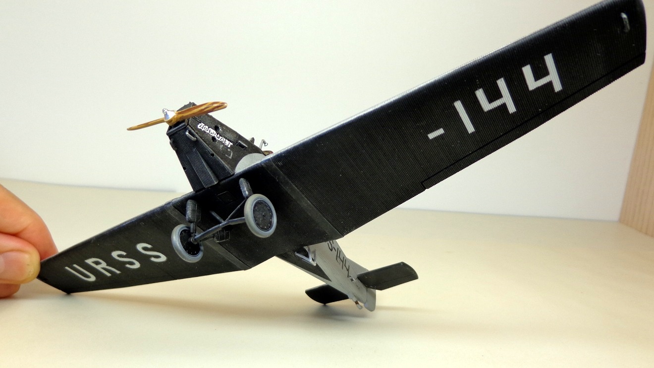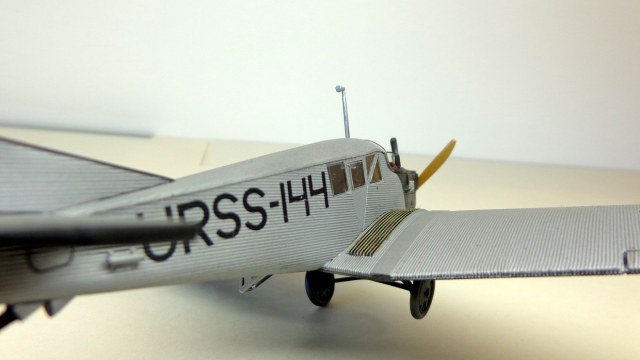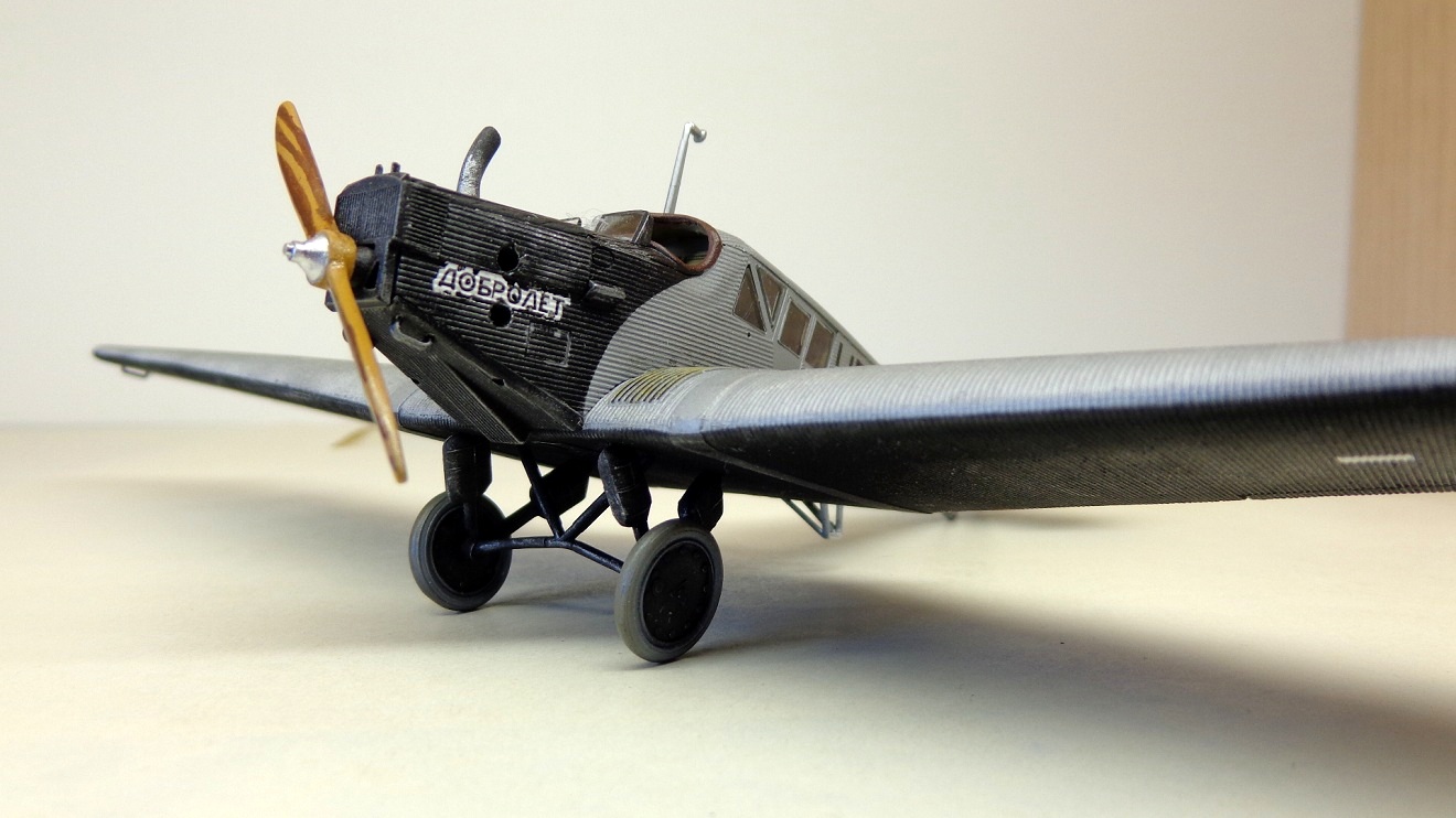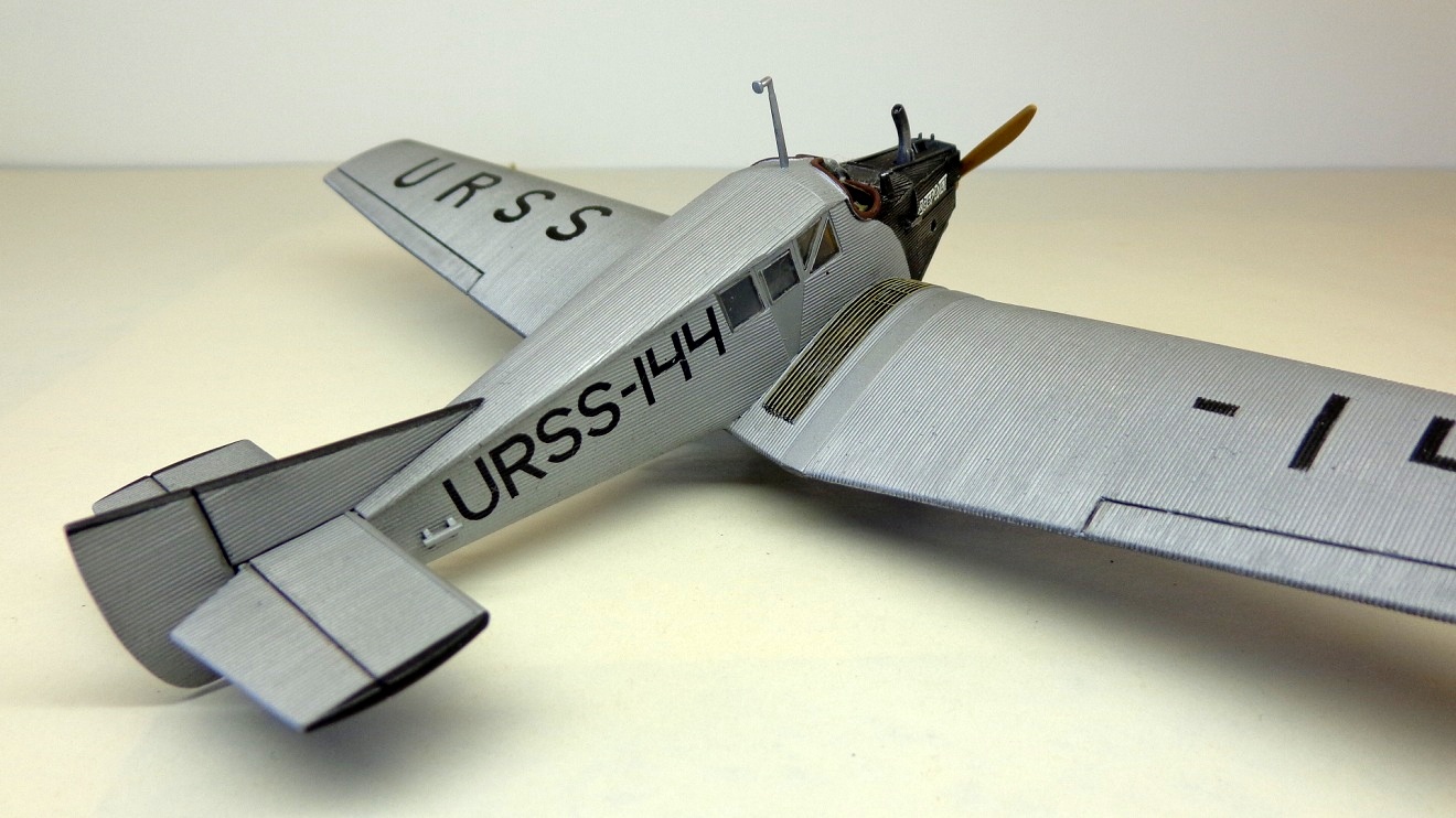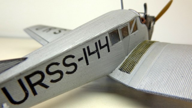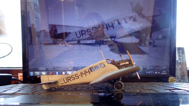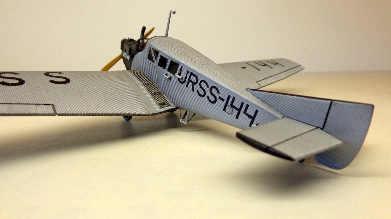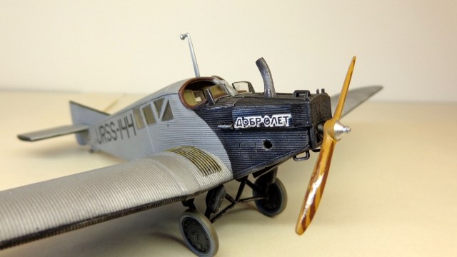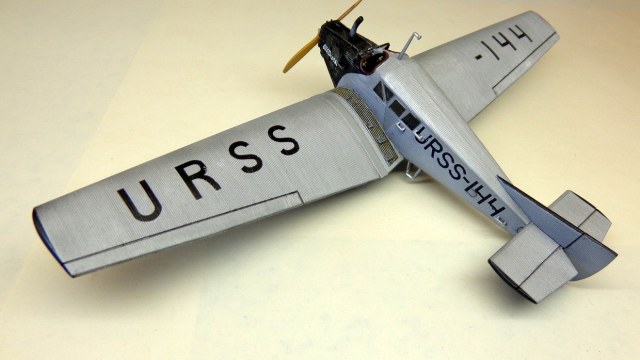 Очень хорошая модель интересного самолета! Кстати, в книге Шелеста И. И. "Лечу за мечтой" описан случай столкновения таких двух "Юнкерсов" из "Добролета" в воздухе, причем самолеты уцелели и никто не пострадал. По счастливой случайности винт на машине "воздушного хулигана" оказался металлическим и при "контакте" с дюралевой обшивкой "коллеги" не разлетелся в щепки...