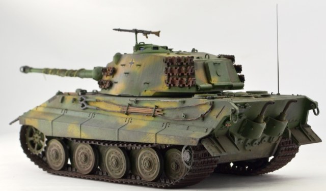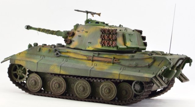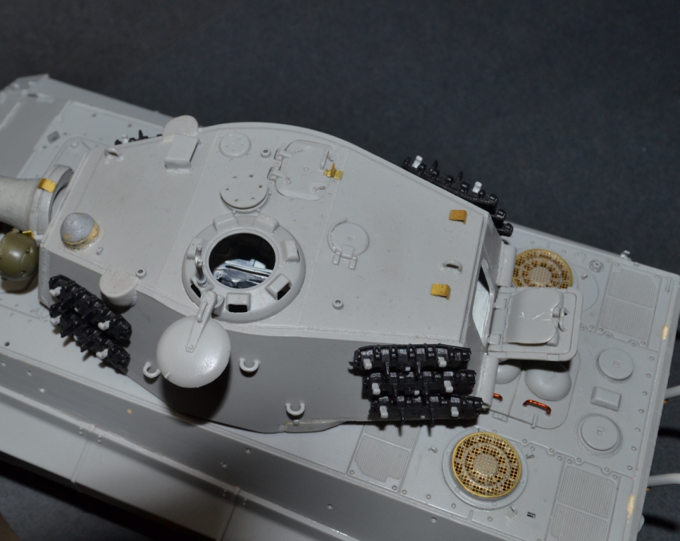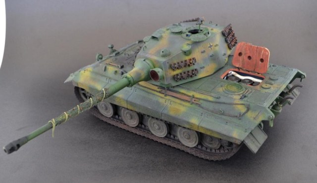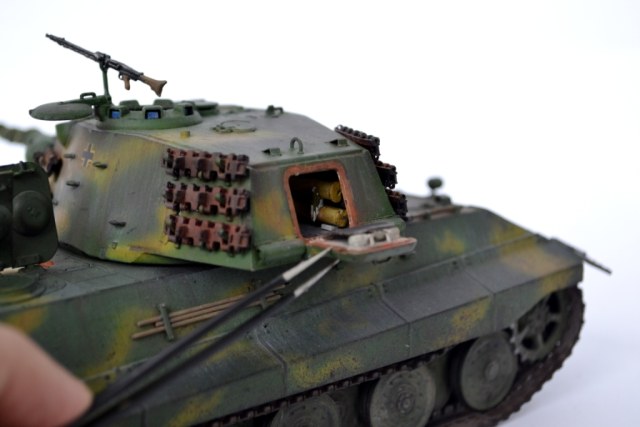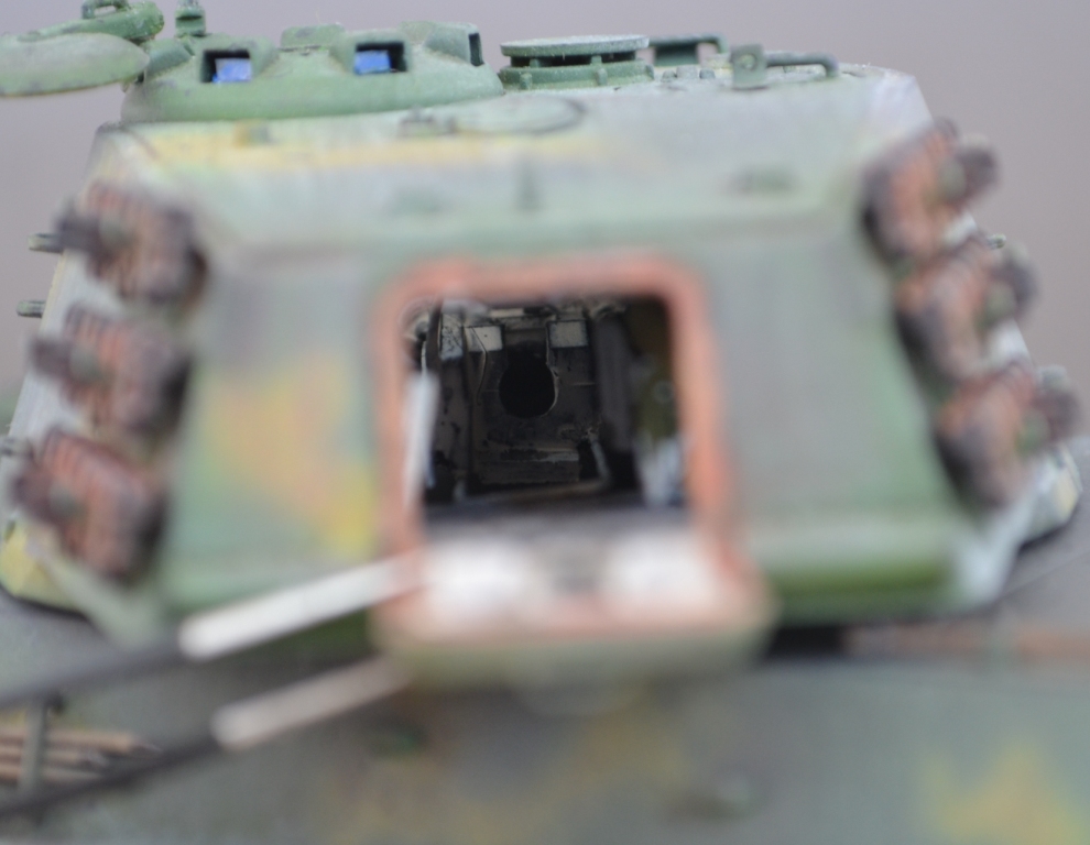 - башня переделана в соответствии с проектным вариантом «поздней» башни Henschel, включая установку стабилизированного перископического прицела, исправление ошибок производителя в сварных швах, гужонах, креплениях зап.траков и т.п. Также сделана попытка имитации башенного интерьера.