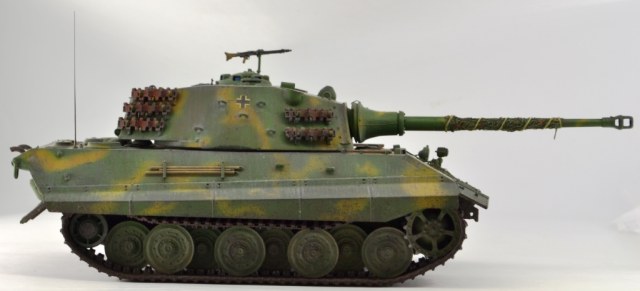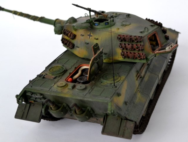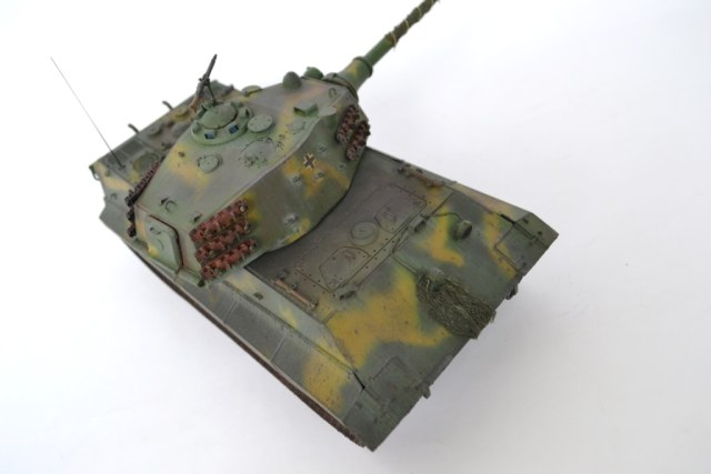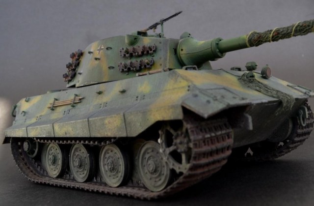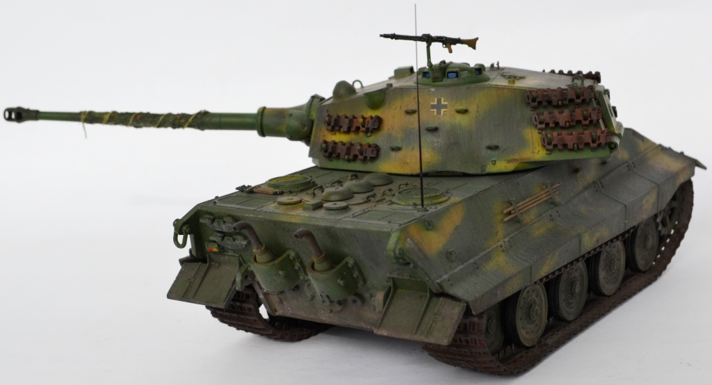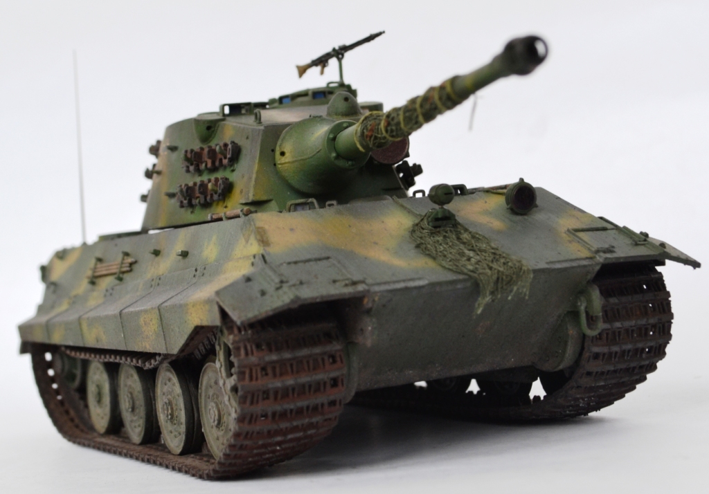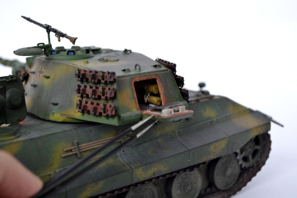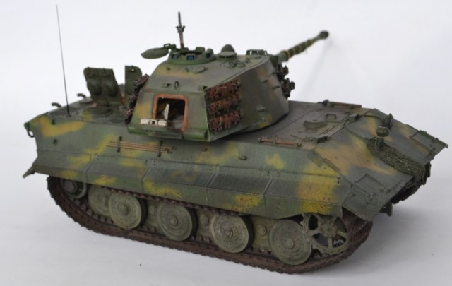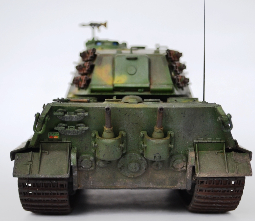 - переработана ходовая часть – заменен ленивец на унифицированный с Panther (родной абсолютно «лысый»), отлит из смолы дополнительный ряд катков (одинарные катки переделаны в двойные).