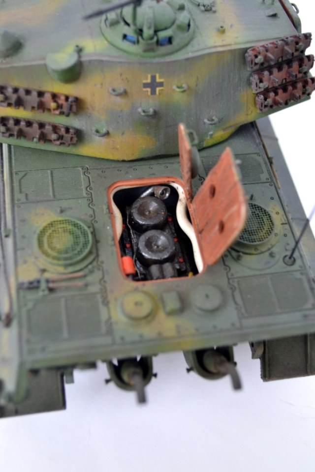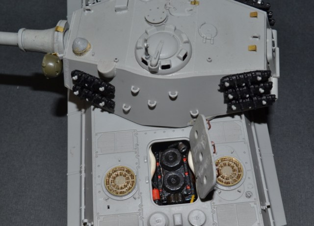 - в качестве эксперимента добавлен двигательный отсек с попыткой имитации 900-сильного двигателя Maybach HL-234 из самопальной смоляной копии звездовского HL-230 (внешне двигатели идентичны)