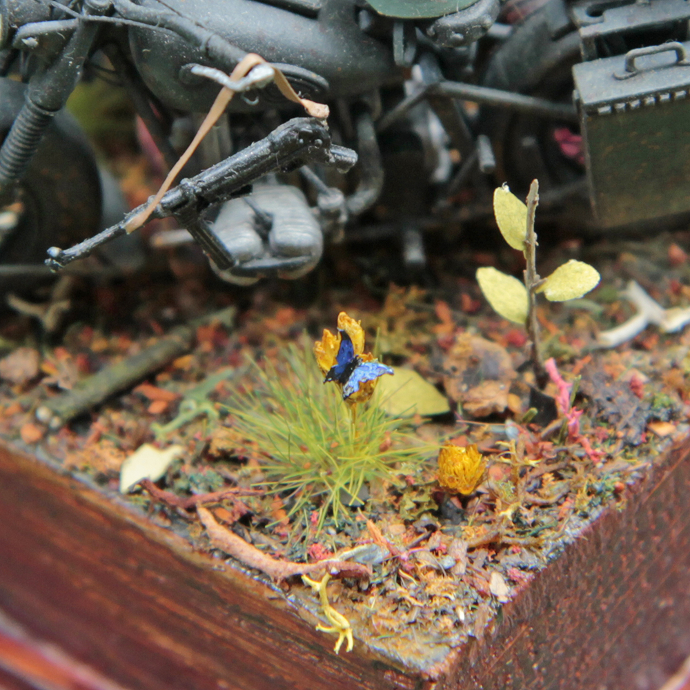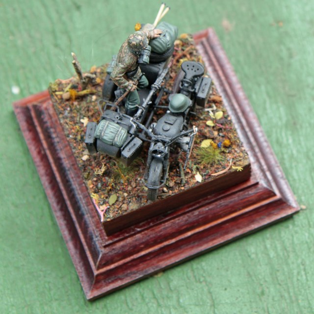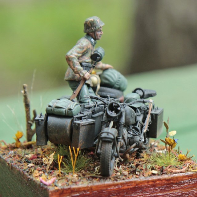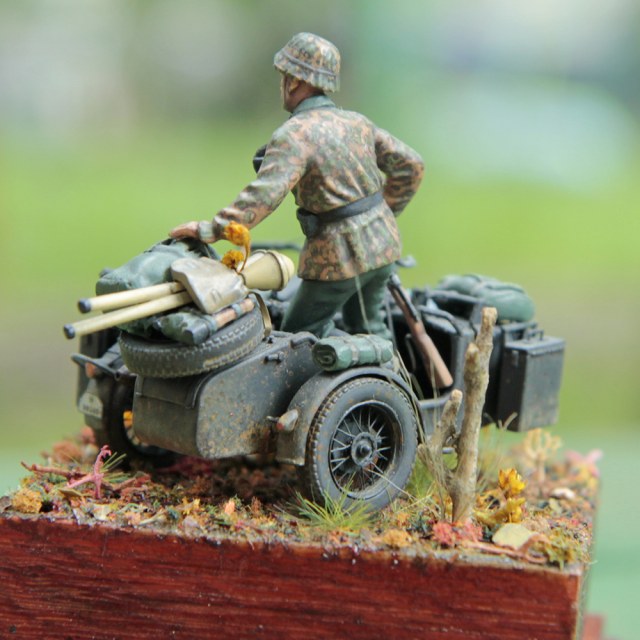 Очень красиво! Камок у немца просто замечательный - пытаюсь изобразить такой же, на куртке танкиста... Я бы немного каску на сидушке "поерзал", но эт так... Общей картины абсолютно не портит. :-)