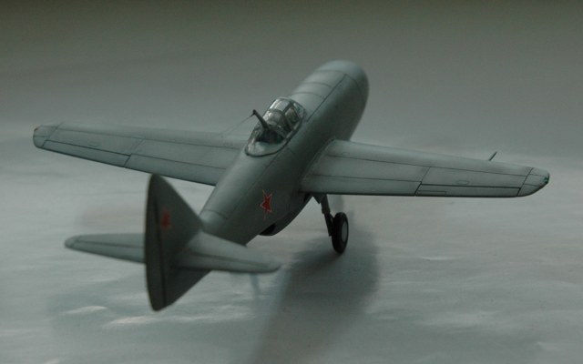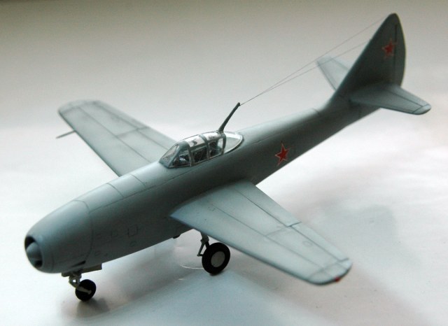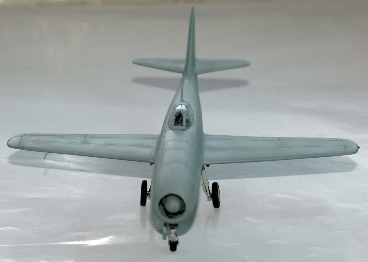 Прикольный самолетик. Первые реактивы они такие неуклюжие, гадкие утята просто. Расшивка местами гуляет (на носу, слева), местами теряется, видимо, как следствие шпатлевочных работ. Пачкинг, как отметил Игорь, несколько невыразителен, но в целом, для А-Модела, хорошо.