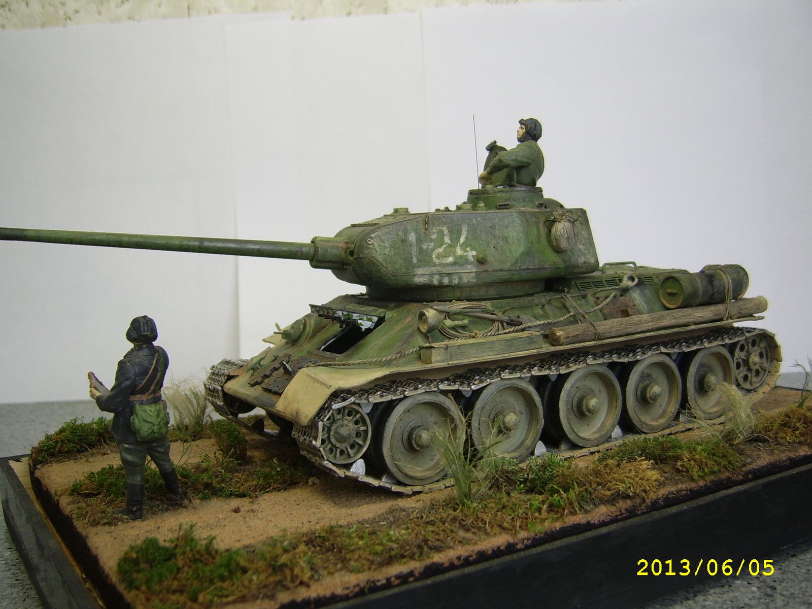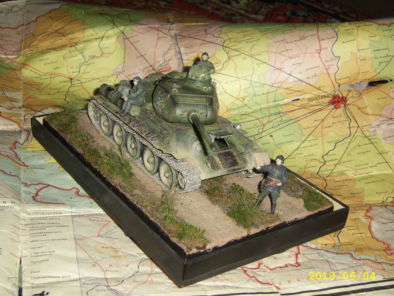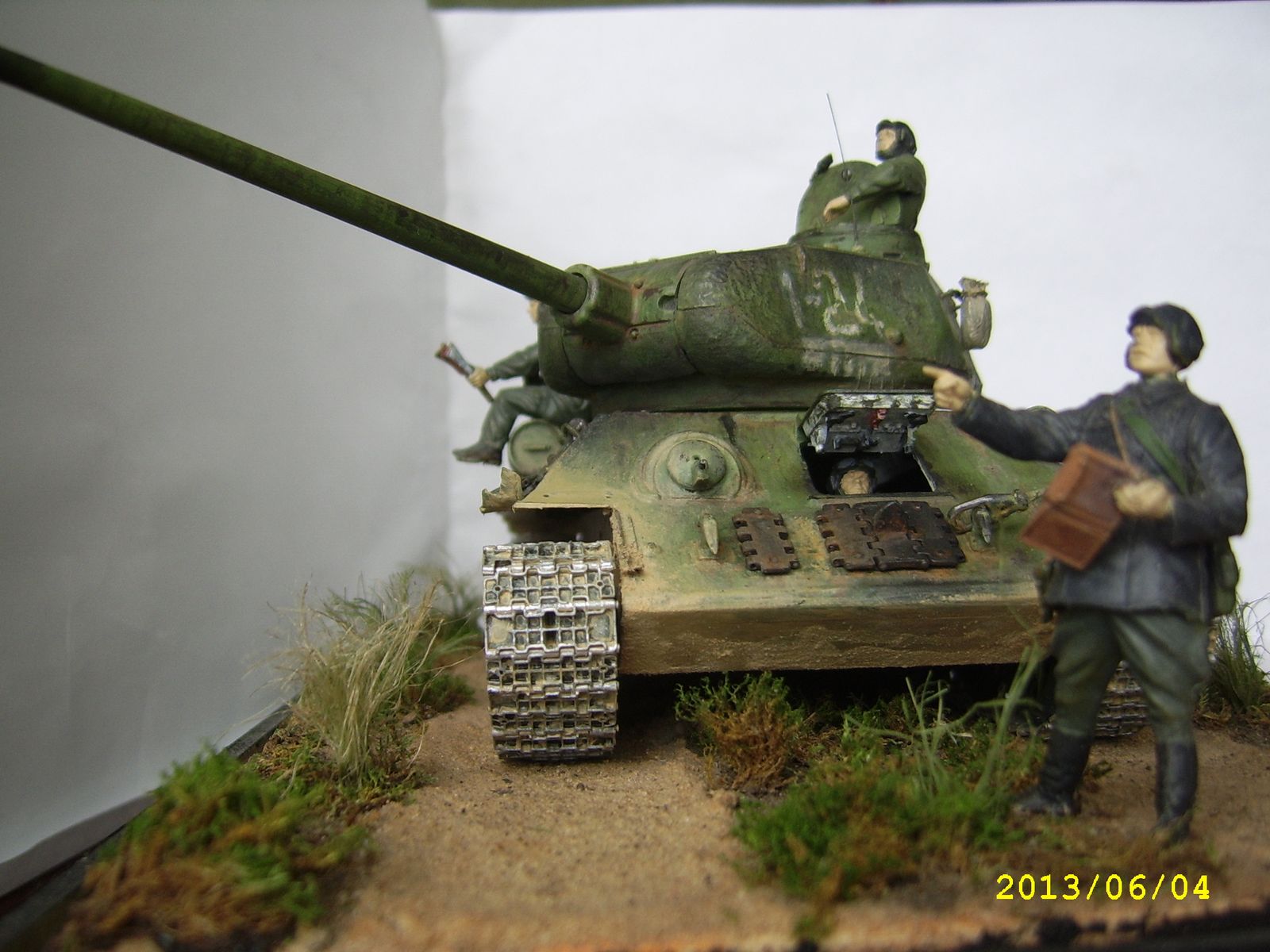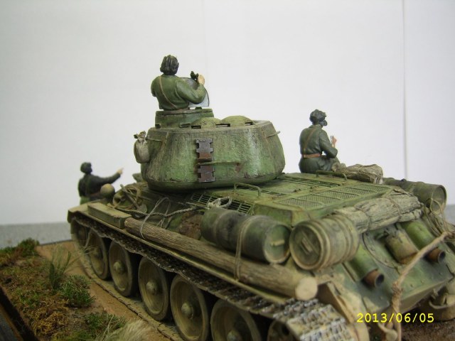 Общее впечатление от работы, Слава, положительное! Смотрится хорошо! Правда сразу возник вопрос: а могли они пересечься в истории- танк Т-34/85 и танкисты в старом обмундировании (с петлицами вместо погон). Все-таки 85-й приняли, если не изменяет память, в 44-м году...