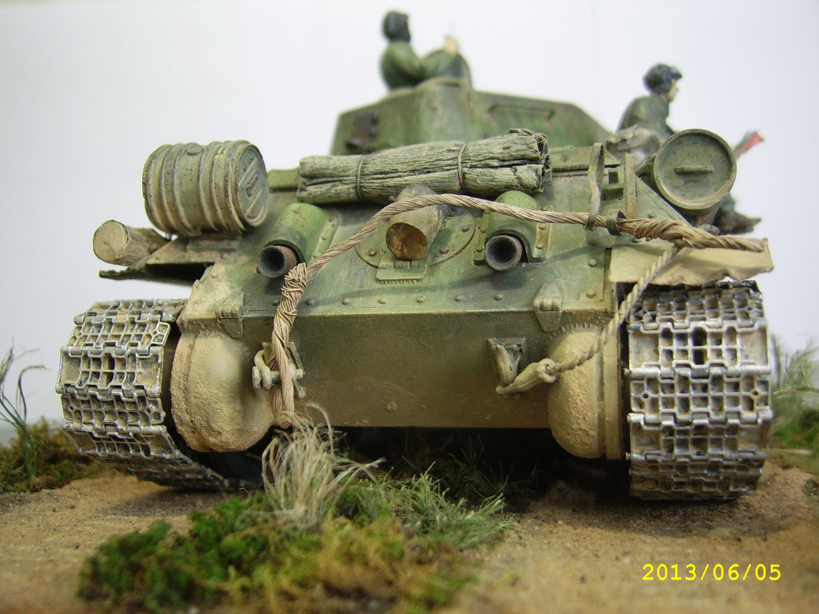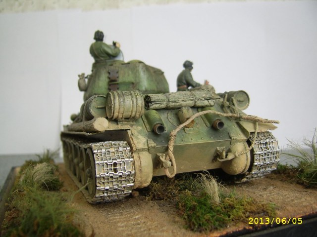 а вот траки понравились! немного бы грунта в "впуклости"... экипаж убрать, фару рассверлить и сделать отражатель, тросы сзади убрать-не масштабные... дымовуху тоже. шанец-посмотреть по фото и тд. и тп. а так-приятная работа.