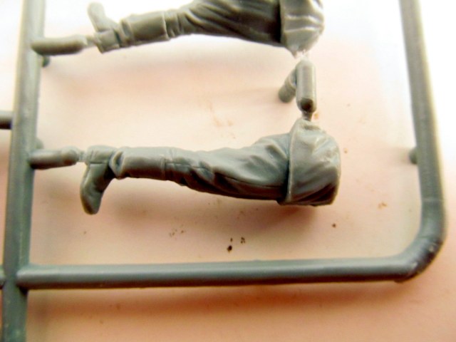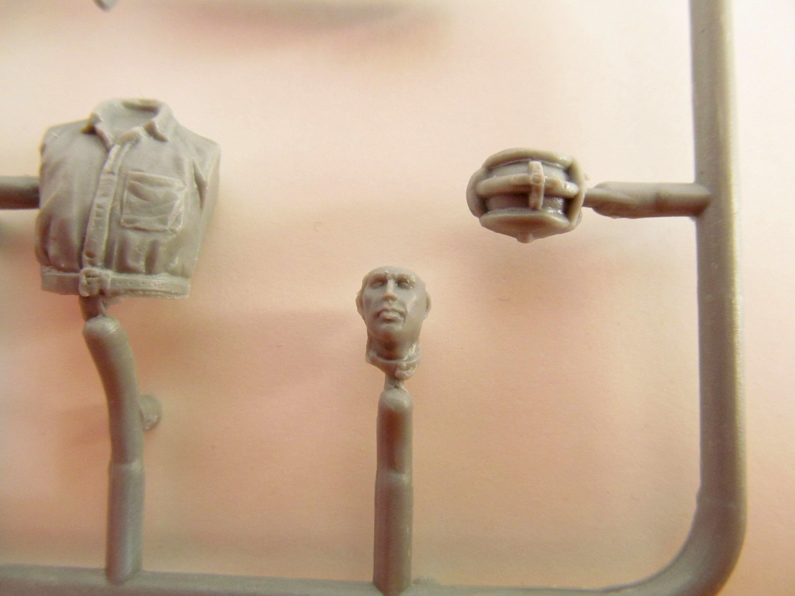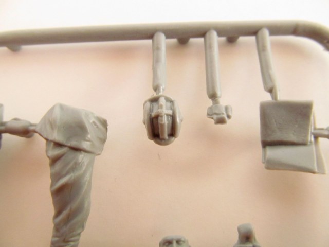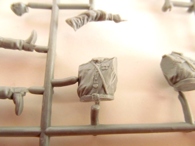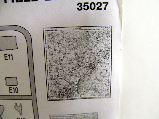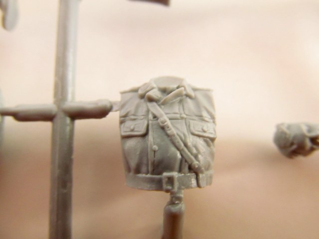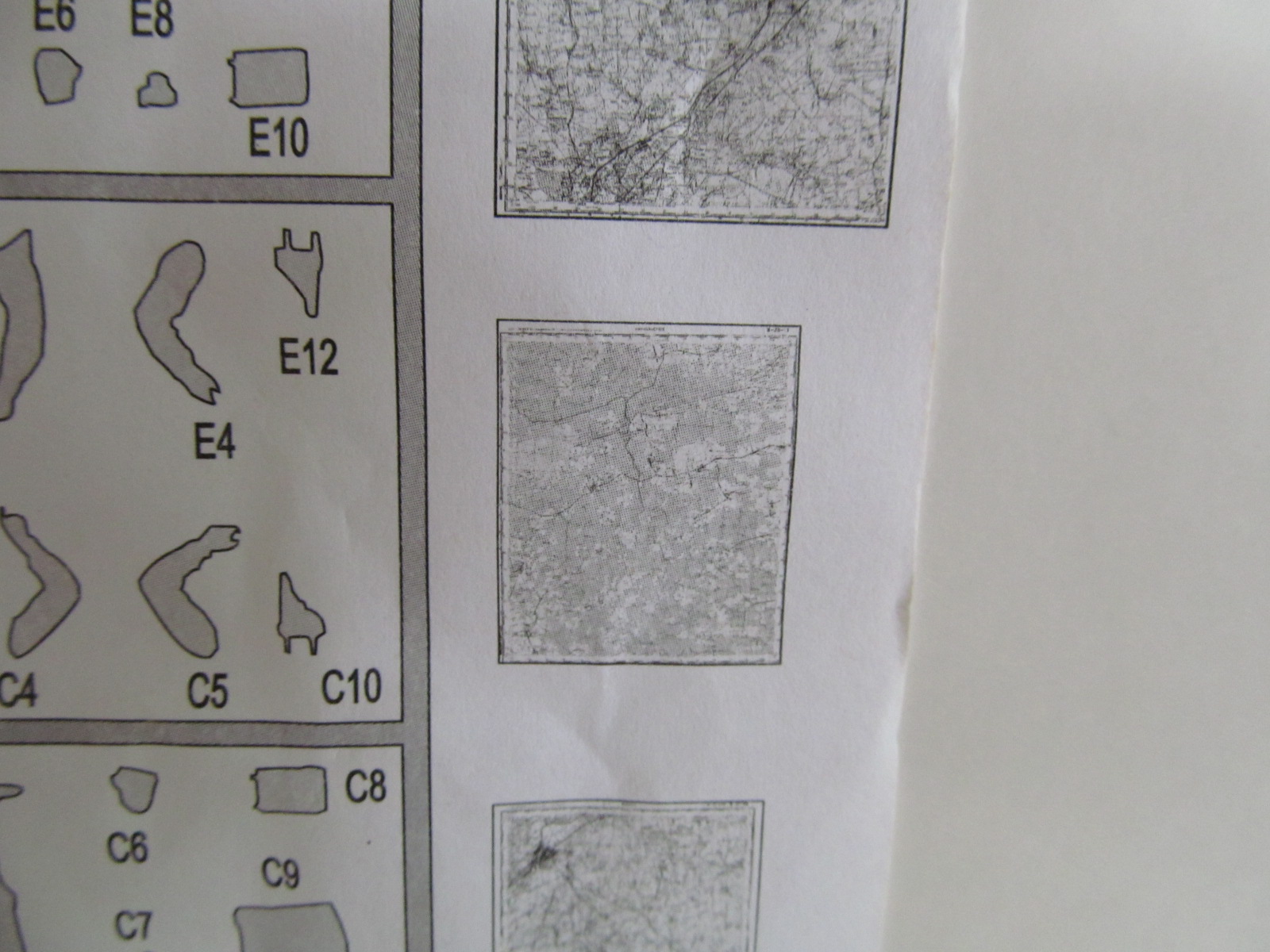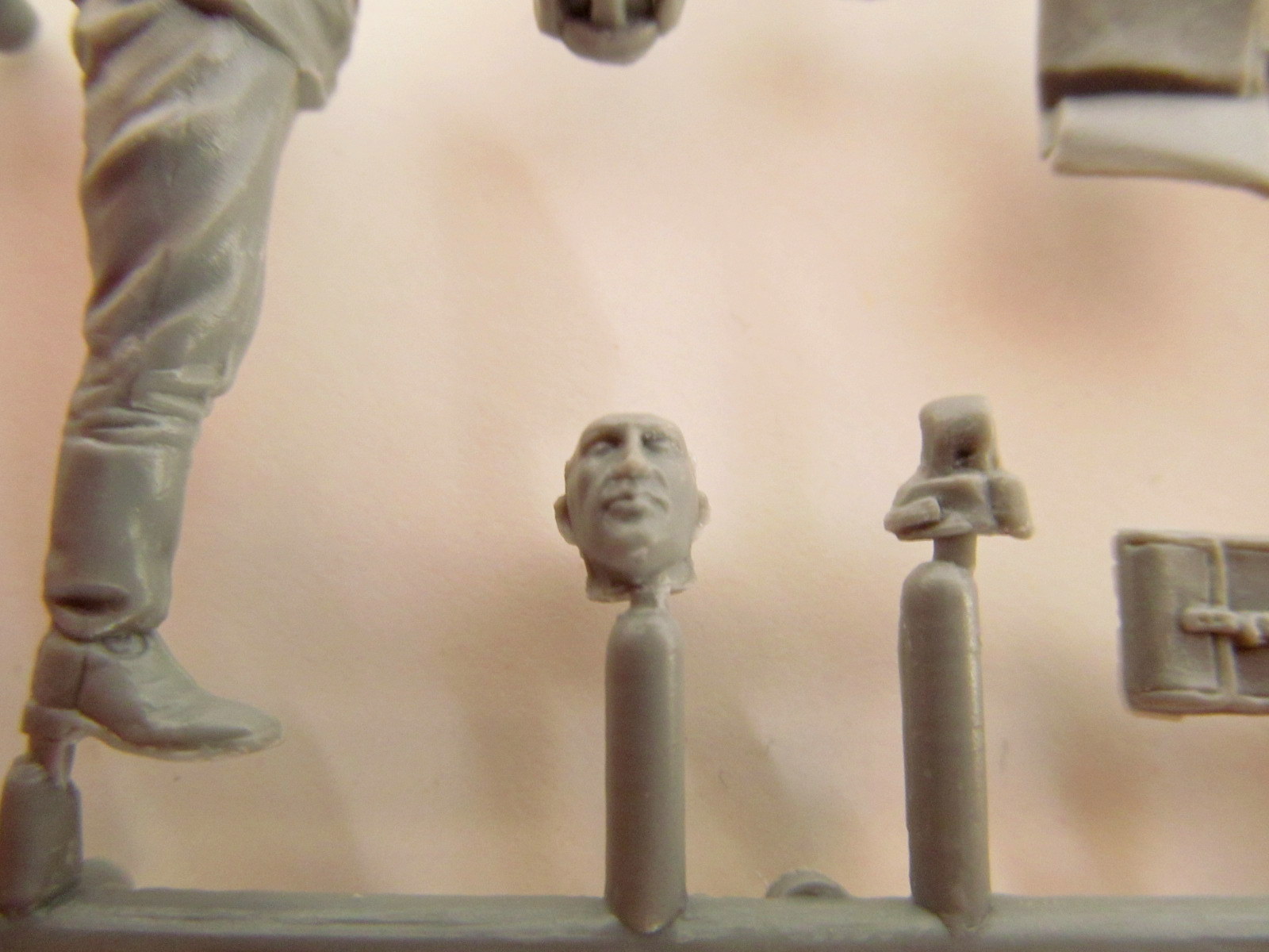 Набор я взял исключительно из-за танкистов, в коробке с боковой загрузкой, лежат 2 литника в пакетике и незамысловатое обозначение деталей на бумаге размером 12смх5см, так же на бумаге присутствуют 3 черно-белые карты. На литниках 5 фигур офицеров и танкистов.