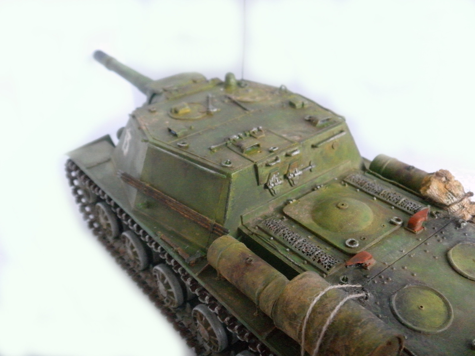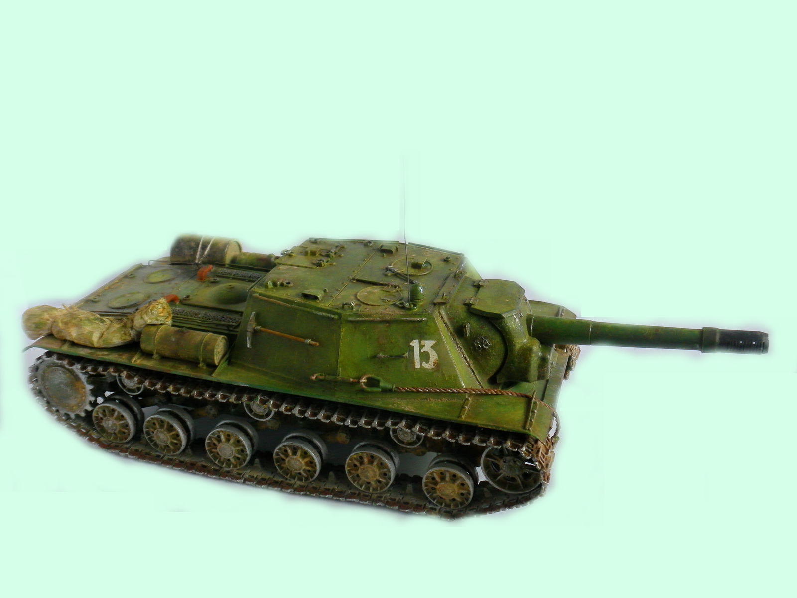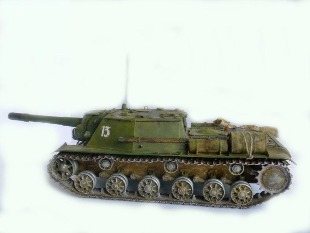 Доброго времени суток, уважаемые каропчане! Су-152 с бортовым номером "13" возможно в природе никогда и не существовала, но к историческому прототипу я привязку и не делал. Модель почти "из каробки", сильно не пачкал - делал "для полки"... Красил автоэмалью, тонировка - масло, пигменты - пастель+водка, пачкал - пастель и масло.