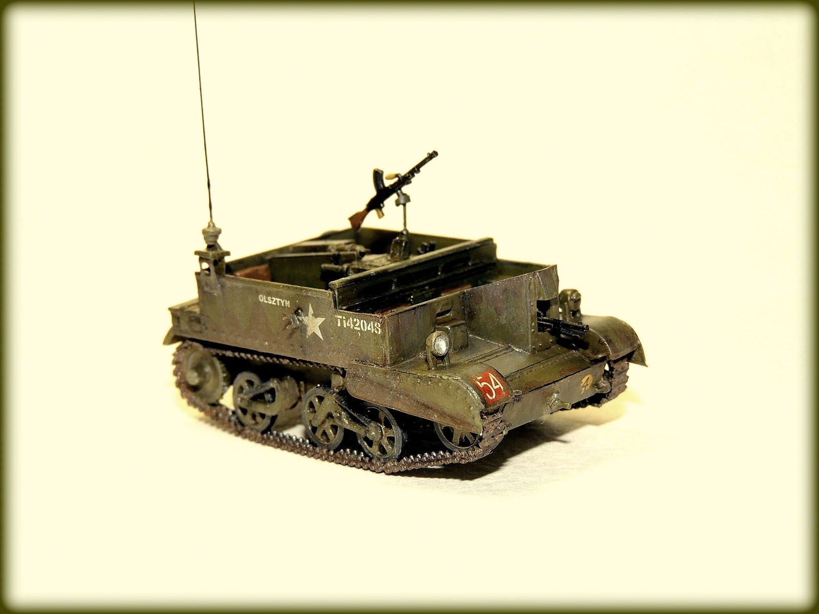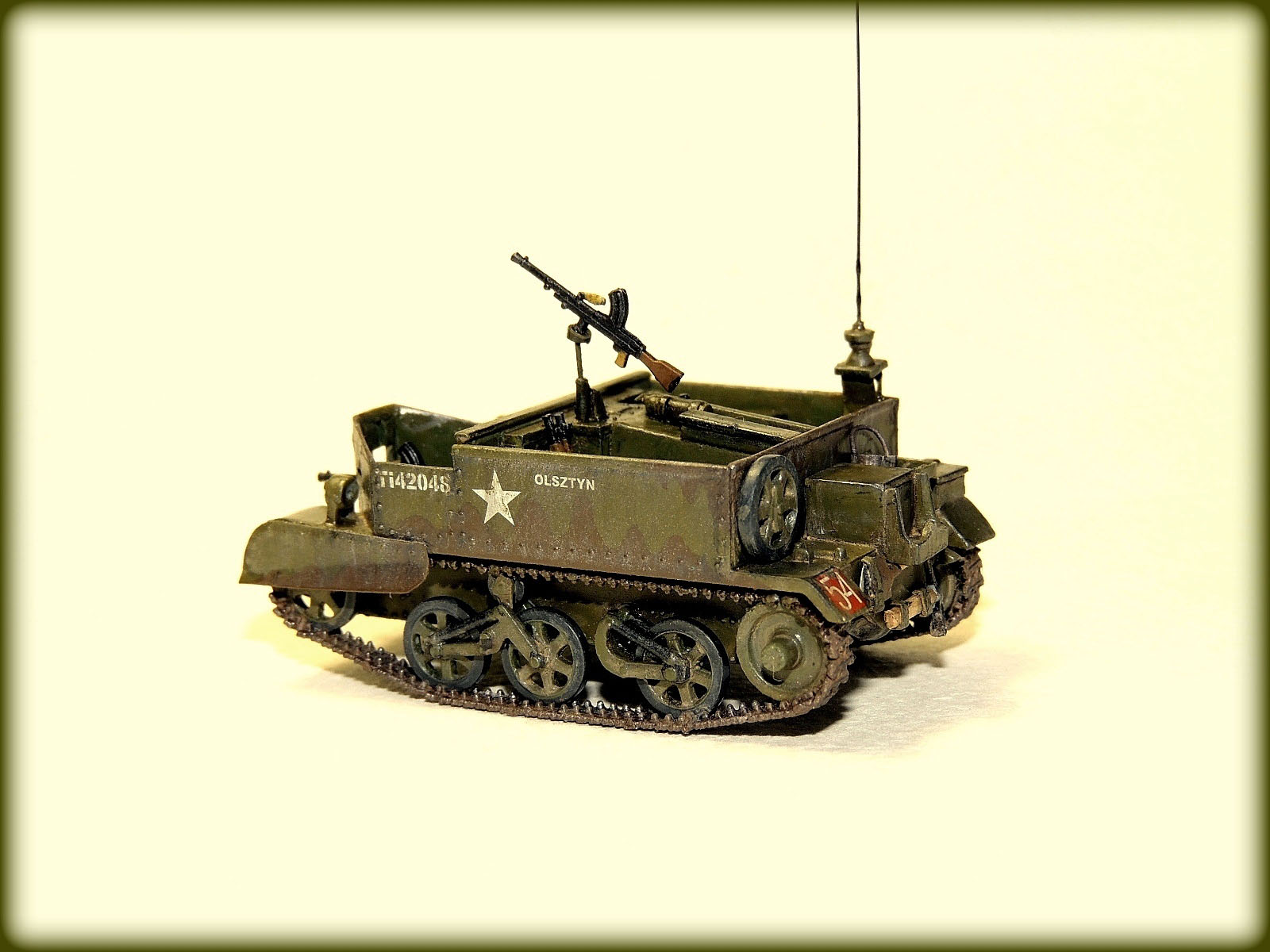 Приветствую коллеги! Выставляю свою очередную работу,на этот раз транспортёр второй мировой universal cerrier mk.I По модели: стыкуемость хорошая,качество пластика то же на уровне,обладает достаточной пластичностью.Сказать что отдыхаешь от сборки,сказать не могу,приходилось стачивать толщину бортов,и помучиться с очень мелкими гусеницами(размером со среднего муравья). Машина из коробки, доработок минимум( в частности: переделал антенну,добавил огнетушитель,ведро,кормовую карнизу.сетку на воздухозаборник между креслами и крылья из пивжести)