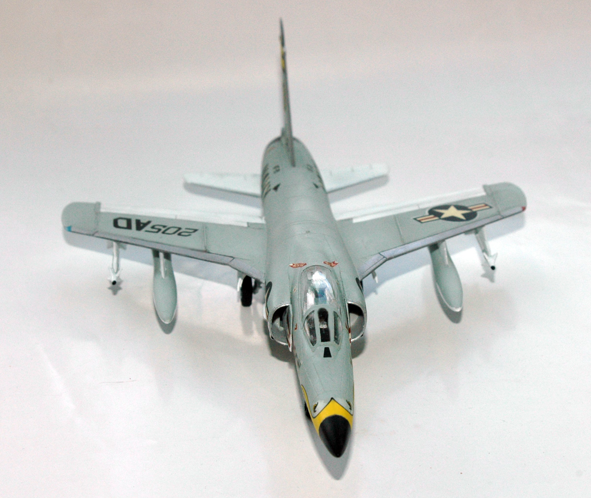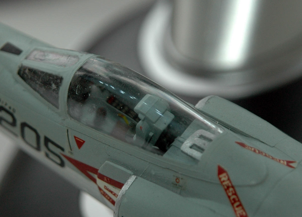 Модель собрана практически из коробки, из изменений: перешил внешний крой на внутренний (кое где пришлось его поправить), слегка оживил внутрикокпитное пространство и родные Сайдуиндеры поменял на те же ракеты, но из набора вооружения воздух-воздух от Хасегавы.